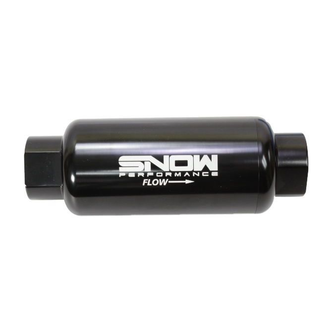 The Snow Performance Fuel Filter is CNC Machined from billet aluminum for the ultimate in looks and corrosion resistance. The filter has 10AN ORB inlets and outlets to ensure that maximum flow is achieved without any restrictions. Our fuel filters feature an interchangeable micron filter element. These micron filter elements, available in 100 or 30 micron sizes, are made from a durable, easy-to-clean stainless steel mesh. This Billet Aluminum Fuel Filter is 2 inches at its widest point and 5.5 inches in length. We recommend purchasing our fuel filter brackets (part# SNF-20001) in order to securely mount this billet fuel filter. Rest assured that your engine will stay safe with Snow Performance Fuel Systems Billet Micron Fuel Filter.