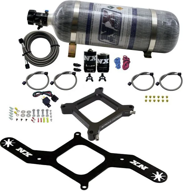 Strona główna » Układ dolotowy » Nitro NX » Zestawy Nitro Carbureted » 4150 Assassin Plate Gasoline RNC 250-750Hp with 12Lb Carbon Bottle Nitrous Express NX 67140-12