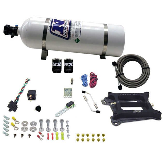 The conventional Stage 6 is the perfect entry level nitrous system for the budget minded sportsman racer. These systems feature the most advanced technology using the conventional spraybarless design. The Phase 3 series plates are the Next Generation in nitrous performance and reliability. This new innovation in nitrous plate technology provides superior distribution and outstanding atomization. With no spray bars to sag, split, block airflow, or damage this is truly the Next Generation in nitrous plate technology. Systems come complete and include limited lifetime guaranteed Lightning solenoids, heavy duty 40 amp relay, 10lb bottle, stainless bottle brackets, and extra long supply line. (Alcohol version)