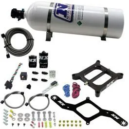 The conventional RNC (Restricted Nitrous Class) systems are the first choice for professional racers that are limited by jet size. These systems feature a CNC billet nitrous plate with enlarged nitrous passages, a .375" orifice Lightning nitrous solenoid, 8an feed line and a .500 orifice Lightning 500 bottle valve. The combination of these components results in a very dense liquid nitrous charge which allows the maximum amount of nitrous flow through a certain size jet. Results of these RNC systems are so impressive that you will have to use one to believe it. Nitrous Express RNC (restricted class nitrous) systems are guaranteed to make the most power per jet size of any system on the market. If you don't make the most horsepower or are not 100% satisfied, NX will gladly refund you 100%. Includes: 8AN Feedline 6AN-4AN custom line from the N2O solenoid to the plate .375" N2O Solenoid .310" Fuel Solenoid Solenoid Mounting Plate Heavy Duty Relay and Harness WOT Activation Switch Master Arming Switch Stainless Steel Brackets (included with systems that include a bottle) Jetting from 300-750HP Every nut, bolt and electrical connector needed to complete the installation If you have an aftermarket engine management system that is capable of adding nitrous enrichment fuel and want this system DRY (no fuel components), please contact us. THE NITRO BOTTLE IS EMPTY!