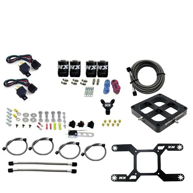 Nowe systemy płytkowe NX Billet Crossbar właśnie podniosły poprzeczkę w technologii płytek z tlenem. Projekt wykonany na maszynie CNC eliminuje okrągłe belki rozprysku, co skutkuje doskonałą atomizacją i rozkładem gazu w cylindrach. Bez belki rozprysku, która mogłaby opaść, obracać się lub zakłócać przepływ powietrza, jest to prawdziwie następne pokolenie w technologii płytek z tlenem z belką poprzeczną.Systemy z butlą zawierają zawór butli Lightning 500 wykonany z aluminium. Ten zawór nie tylko świetnie wygląda; jest wyposażony w funkcje, takie jak dwa zintegrowane porty manometrów, rurka syfonowa o średnicy 5/8 cala, duże otwory o średnicy .500 cala i udoskonaloną drogę przepływu z jednym tylko zakrętem pod kątem 45 stopni. Zawór butli Lightning świetnie wygląda, doskonale przepuszcza gaz i waży prawie jeden funt mniej niż nasz stary zawór mosiężny.Ten system z belką poprzeczną z tlenem zawiera więcej niż standardowy zestaw z belką poprzeczną z tlenem. Zawiera on specjalny uchwyt na elektrozawór, kute złączki Y z aluminium, plecione linie ze stali nierdzewnej od elektrozaworu do płytki, złączki niklowane, przełącznik pełnego przepustu, przełącznik uzbrajania, przekaźnik 40 Amperów oraz przewód z przekaźnikiem.Ten system jest przeznaczony dla kolektorów ze strugą 4500 i zawiera dawkowanie dla 100, 200, 300, 400 & 500 KM na każdy stopień. Jeśli masz zainstalowany system zarządzania silnikiem poza zakresem fabrycznym, który potrafi dodawać dodatkowe paliwo tlenowe i chcesz ten system SZCZELNY (bez elementów paliwowych), skontaktuj się z nami. Instrukcje PDF