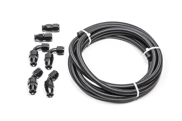 These kits are available in a few sizes. PTFE hose used in the universal DIY kits uses a black polyester outer braid.