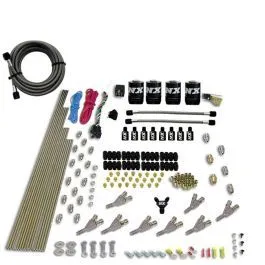 8 Cylinder S.T.D Annular Nozzle Direct Port 4 Solenoids Carburted Applications Ten system zawiera 8 dysz NX Straight Through Design (STD), 2 elektrozawory nitro NX Lightning series, 2 elektrozawory paliwa NX Lightning series, anodowane bloki dystrybucyjne z aluminium, 3/16 stalowe twarde rury, niklowane złącza, regulację do mocy 200-500HP, linie zasilające w nitro o średnicy 6AN, duże wlotowe Y, przelącznik pełnego otwarcia przepustnicy, przekaźniki 40 Amp oraz ich przewody, przełącznik uzbrajania głównego, stalowe uchwyty na butlę i butlę na 10 funtów z zaworem NX Lightning. Ten system zawiera najnowszą technologię i najlepsze dostępne komponenty. Dla wszystkich zapragnionych technicznych szczegółów, przedstawimy kilka informacji wyjaśniających, co sprawia, że ten system z podawaniem nitro jest tak doskonały. Kluczem do maksymalizacji mocy nitro jest zachowanie nitro w gęstej formie ciekłej aż do wstrzyknięcia w silnik. Ostre zakręty w przepływie nitro powodują jego zator co powoduje powstawanie bąbli gazowych w przepływającym nitro. Gęste ciekłe nitro daje więcej mocy niż gazowe nitro! Ten system nitro NX zawiera kluczowe komponenty, które zapewniają, że uzyskujesz maksymalną moc na funt zużytego nitro. Czytaj dalej, a wyjaśnimy. Elektrozawory Lightning zapewniają ulepszony przepływ, w którym nitro/paliwo wchodzi powyżej siedziska i wychodzi na dole, co daje niezrównany przepływ. Elektrozawory nitro Lightning posiadają zintegrowany port purgacyjny, który pozwala na bezpośrednie połączenie zaworu purge bezpośrednio z obudową elektrozaworu nitro. Spłukiwanie przez obudowę elektrozaworu eliminuje kieszonkę powietrzną między zaworem purge a dyszą elektrozaworu nitro. Elektrozawory paliwa Lightning posiadają port przedmuchu paliwa, który pozwala na podłączenie małego rury zwrotnej do zbiornika. To eliminuje uwięzioną powietrze między regulatorem ciśnienia paliwa a elektrozaworem paliwa, co eliminuje chudy moment związany z innymi elektrozaworami. Elektrozawory z serii Lightning posiadają ciała CNC z aluminium przykryte pokrywami z włókna węglowego dla ostatecznej oszczędności wagi. Nitrous Express używa tylko najwyższej jakości komponentów, wyprodukowanych w USA, w swoich elektrozaworach. Nie daj się nabrać na niskie ceny, elektrozawory są najważniejszym komponentem systemu nitro. Instrukcje PDF