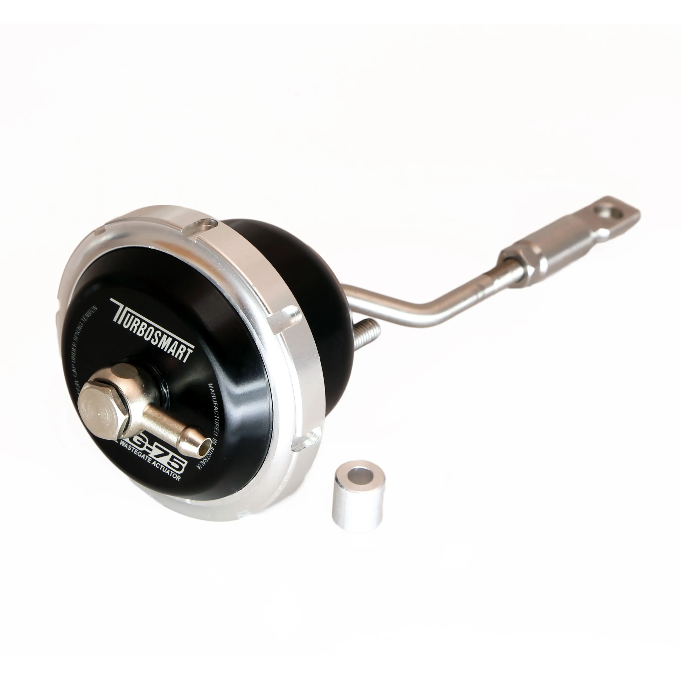 The Subaru WRX has long been an icon of the turbocharged performance car world. The latest WRX continues the tradition with its powerful and charismatic 2.0-litre turbo Boxer engine and trademark all-wheel-drive.Turbosmart is committed to offering the best products to enhance the performance of this evergreen sports sedan. The IWG-75 Internal Wastegate Actuator is the latest addition to Turbosmart's range of products designed specifically for the 2015 WRX and WRX STi.Turbosmart's IWG-75 Internal Wastegate Actuator allows more precise control over the flow of exhaust gas to the turbocharger compared to the stock actuator, creating a flatter, more stable boost curve with less drop off at the end of the rev range. The result is a more drivable car with better turbo response, smoother power delivery and less lag.Turbosmart's Internal Wastegate Actuator can cope with the high stresses and temperatures of high boost applications for prolonged periods of time, and is highly customisable with interchangeable springs for a range of boost levels. Stock actuators can struggle to cope with the pressures of increased boost, so the IWG-75 is a must for the WRX enthusiast looking for more power while avoiding damaging boost spikes.Features:• Silicone diaphragm with Nomex reinforcement to withstand high temperatures.• High grade, billet aluminum construction.• Stainless steel rods and connecting clevis for corrosion resistance.• Locking Collar design cap allows for quick spring changes.• Ideal for use with any Turbosmart boost controller.