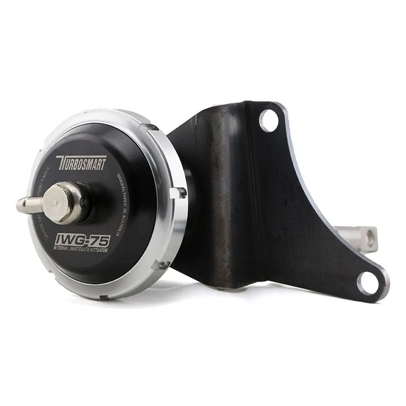 "Turbosmart – wysokowydajny, zamienny Internal Wastegate Actuator dla modeli WRX z lat 1997–2007 wyposażonych w turbosprężarkę TD04 został zaprojektowany, aby poprawić reakcję doładowania standardowej turbosprężarki WRX dla osób, które chcą uniknąć kosztu zakupu aftermarketowej turbosprężarki.Standardowy, tłoczony stalowy siłownik zastosowany w turbosprężarce Subaru TD04 jest łatwo rozwierany przez gazy wylotowe, co skutkuje wolnym narastaniem doładowania oraz jego spadkiem przy wysokich obrotach. Dlatego Turbosmart IWG-75 ma sztywniejsze sprężyny i większą powierzchnię membrany, co utrudnia niepożądane otwarcie wastegate’u, gdy powinien pozostawać zamknięty.Efektem jest szybsze narastanie doładowania oraz lepsza moc i moment obrotowy w całym zakresie obrotów. Z Turbosmart IWG krzywa doładowania jest gładsza i utrzymuje wyższy poziom aż do odcinki.Dodatkowo, wraz ze starzeniem się tych samochodów standardowe siłowniki ulegają degradacji i ostatecznie zawodzą. Turbosmart IWG-75 jest wykonany z aluminium obrabianego z litego bloku (billet) oraz z wysokiej jakości materiałów odpornych na wysoką temperaturę, co zapewnia znakomitą niezawodność.W zestawie uchwyt i złączki. Pasuje do turbosprężarek TD04."