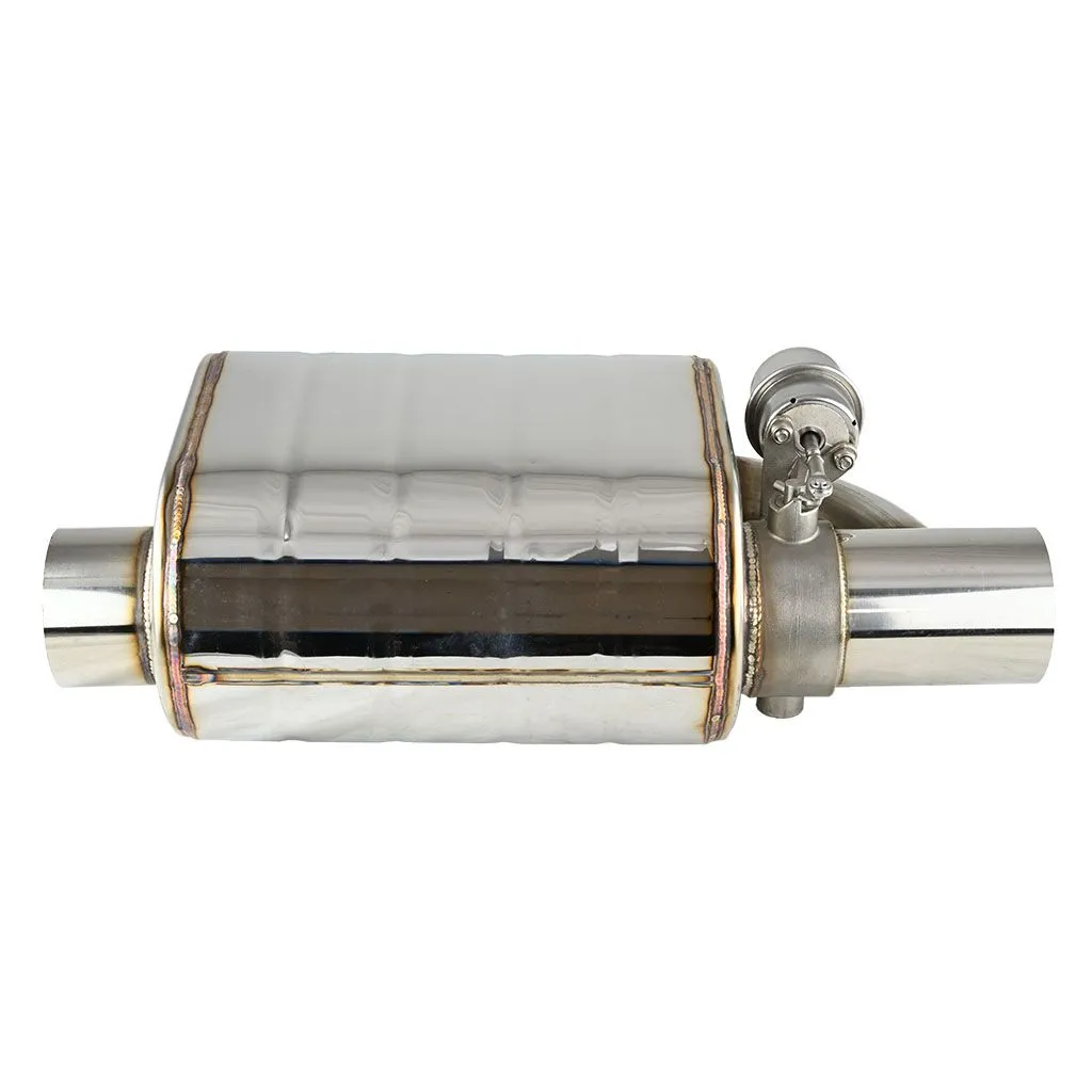 Aktywny tłumik JRspec z przepustnicą podciśnieniową i pompą vacum sterowaną pilotem 76mm (3") prawy Tłumik z zaworem podciśnieniowym to innowacyjny element układu wydechowego, łączący cechy tradycyjnego tłumika oraz sportowego przelotowego. Dzięki zastosowaniu komory wyciszającej oraz pneumatycznej przepustnicy sterującej przepływem spalin, użytkownik może regulować dźwięk w zależności od potrzeb. - W pozycji zamkniętej spaliny przechodzą przez komorę wyciszającą, co znacząco redukuje hałas, zwłaszcza na niskich obrotach. - W pozycji otwartej spaliny wydostają się swobodnie, co poprawia osiągi i nadaje układowi wydechowemu sportowe brzmienie. Cała konstrukcja wykonana jest z wysokiej jakości stali nierdzewnej gatunku 304, odpornej na warunki atmosferyczne, sól drogową i chemiczne substancje zawarte w spalinach. Wszystkie elementy są przetłaczane w celu usztywnienia i wyeliminowania drgań. Cechy produktu: -Regulacja dźwięku– możliwość wyboru między cichą a sportową charakterystyką układu wydechowego - W całości wykonany ze stali nierdzewnej 304 - Wełna stalowa nierdzewna odporna na wysoką temperaturę - Tłoczone elementy odporne na pękanie - Solidna konstrukcja – tłumik oraz przepustnica wykonane ze stali nierdzewnej dla maksymalnej trwałości - Szczelność i bezawaryjna praca – odlewana obudowa przepustnicy zapewnia wysoką wytrzymałość i niezawodność - Zewnętrzna antena – lepszy zasięg pilotów sterujących - Łatwa instalacja – kabel zasilający zakończony wtyczką do gniazda samochodowego 12V - Piloty sterujące – wygodne sterowanie przepustnicą (zasilane baterią CR2032 – brak w zestawie) Wymiary: - Wymiary całkowite: długość 500 mm, szerokość 240 mm, wysokość 150 mm - Tłumik: 260mm x 240mm - Średnica wejścia/wyjścia: 76 mm (3 cale) - Centralka sterująca: długość 170 mm, szerokość 105 mm, wysokość 55 mm Zestaw zawiera: -Tłumik z przepustnicą - Centralka sterująca zaworem podciśnienia - 2 piloty sterowania - Przewód podciśnienia - Przewód zasilający - Trójnik