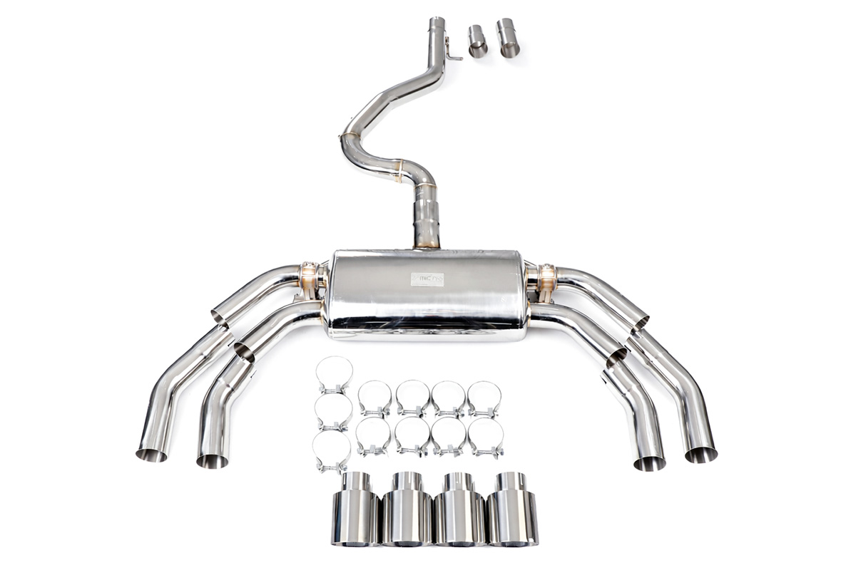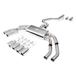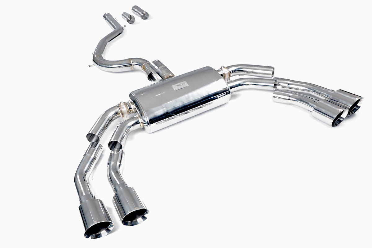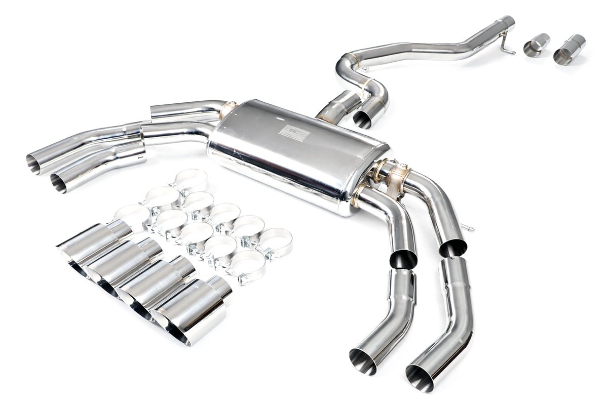 Aktywny układ wydechowy z klapami Cat-Back FMIC.Pro Audi S3 8Y 2.0 TFSI 2020- Dedykowany układ wydechowy FMIC.Pro typu cat-back został zaprojektowany w celu poprawy przepływu spalin oraz uzyskania wyraźnie bardziej sportowej charakterystyki dźwiękowej. Zastosowana średnica orurowania 76m / 3.0” oraz konfiguracja tłumików zapewniają głębszy, bardziej nasycony dźwięk pod obciążeniem, przy zachowaniu komfortu podczas spokojnej jazdy -szczególnie w trybie zamkniętych klap. Układ wykonano w całości ze stali nierdzewnej SS304, odpornej na korozję i pracę w warunkach wysokiej temperatury. Orurowanie gięte na obrabiarkach CNC zapewnia powtarzalną geometrię oraz precyzyjne dopasowanie do seryjnych mocowań. Dzięki temu montaż jest prosty i odbywa na zasadzie plug & play. Połączenia spawane wykonywane są metodą TIG w osłonie argonu, dzięki czemu spoiny są czyste, estetyczne i w pełni szczelne - kluczowe dla niezawodności układu wydechowego. W miejscach połączeń kołnierzowych zastosowano flansze obrabiane w technologii CNC o grubości 10 mm. Zapewniają one wysoką sztywność połączenia, ograniczają ryzyko odkształceń wynikających z cykli termicznych i umożliwiają równomierny docisk uszczelnienia na całej powierzchni. Układ wyposażony jest w zintegrowane elektryczne klapy, umożliwiające zmianę drogi przepływu spalin w tylnej sekcji: Tryb zamknięty – spaliny przechodzą przez pełną sekcję tłumienia, co zapewnia bardziej stonowane brzmienie i wysoki komfort w codziennej eksploatacji. Tryb otwarty – spaliny omijają tłumik końcowy, co skutkuje głośniejszym, bardziej bezpośrednim i sportowym brzmieniem. Rozwiązanie to pozwala dopasować charakterystykę układu wydechowego do warunków oraz preferencji kierowcy. Sterowanie klapami odbywa się za pomocą dołączonego kontrolera oraz dwóch pilotów, umożliwiających szybkie przełączanie trybów pracy w dowolnym momencie. Dla uzyskania maksymalnego potencjału układu wydechowego FMIC.Pro zalecane jest połączenie układu cat-back z downpipe’em o zwiększonej przepustowości (szczególnie w jednostkach turbodoładowanych).Liczba końcówek wydechowych: 4 okrągłe Średnica: 76m / 3.0” Silnik: 2.0 TFSI R4 Turbo (EA888 Gen 4) Dedykowany do: - Audi S3 8Y 2.0 TFSI quattro 310 KM 2020-