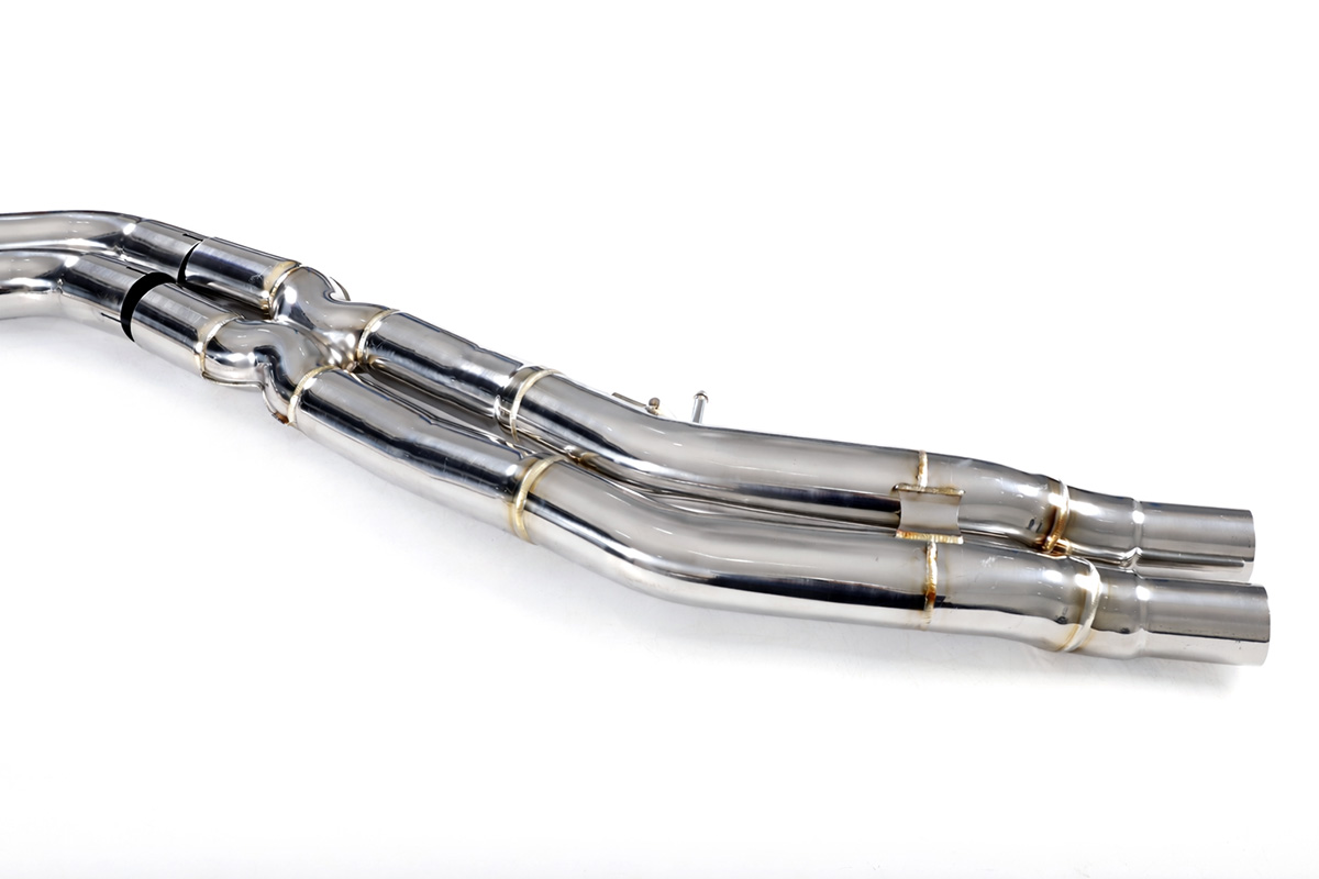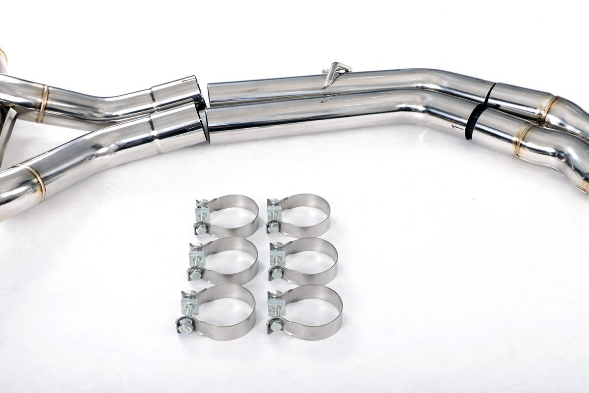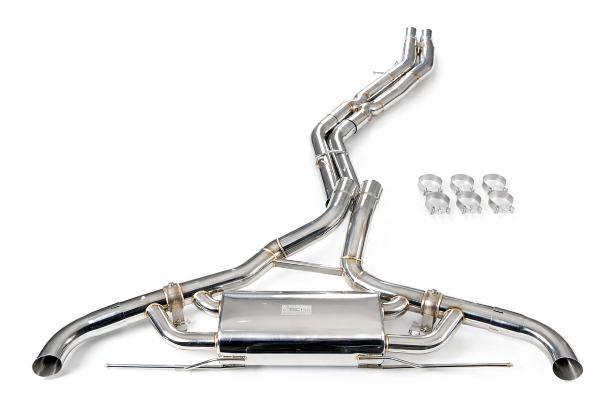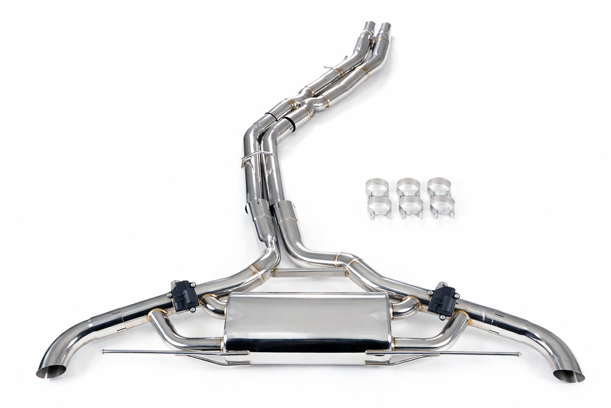 Aktywny układ wydechowy z klapami Cat-Back FMIC.Pro Audi SQ5 B9.5 3.0 TFSI 2020-2024 Dedykowany układ wydechowy FMIC.Pro typu cat-back został zaprojektowany w celu poprawy przepływu spalin oraz uzyskania wyraźnie bardziej sportowej charakterystyki dźwiękowej. Zastosowana średnica orurowania 63mm / 2,5” oraz konfiguracja tłumików zapewniają głębszy, bardziej nasycony dźwięk pod obciążeniem, przy zachowaniu komfortu podczas spokojnej jazdy -szczególnie w trybie zamkniętych klap. Układ wykonano w całości ze stali nierdzewnej SS304, odpornej na korozję i pracę w warunkach wysokiej temperatury. Orurowanie gięte na obrabiarkach CNC zapewnia powtarzalną geometrię oraz precyzyjne dopasowanie do seryjnych mocowań. Dzięki temu montaż jest prosty i odbywa na zasadzie plug & play. Połączenia spawane wykonywane są metodą TIG w osłonie argonu, dzięki czemu spoiny są czyste, estetyczne i w pełni szczelne - kluczowe dla niezawodności układu wydechowego. W miejscach połączeń kołnierzowych zastosowano flansze obrabiane w technologii CNC o grubości 10 mm. Zapewniają one wysoką sztywność połączenia, ograniczają ryzyko odkształceń wynikających z cykli termicznych i umożliwiają równomierny docisk uszczelnienia na całej powierzchni. Układ wyposażony jest w zintegrowane elektryczne klapy, umożliwiające zmianę drogi przepływu spalin w tylnej sekcji: Tryb zamknięty – spaliny przechodzą przez pełną sekcję tłumienia, co zapewnia bardziej stonowane brzmienie i wysoki komfort w codziennej eksploatacji. Tryb otwarty – spaliny omijają tłumik końcowy, co skutkuje głośniejszym, bardziej bezpośrednim i sportowym brzmieniem. Rozwiązanie to pozwala dopasować charakterystykę układu wydechowego do warunków oraz preferencji kierowcy. Sterowanie klapami odbywa się za pomocą dołączonego kontrolera oraz dwóch pilotów, umożliwiających szybkie przełączanie trybów pracy w dowolnym momencie. Dla uzyskania maksymalnego potencjału układu wydechowego FMIC.Pro zalecane jest połączenie układu cat-back z downpipe’em o zwiększonej przepustowości (szczególnie w jednostkach turbodoładowanych).Średnica: 63mm / 2,5” Silnik: 3.0 TFSI V6 Turbo (EA839) Dedykowany do: -Audi SQ5 (FY) SUV B9.5 2020-2024 -Audi SQ5 Sportback (FY) B9.5 2021-2024
