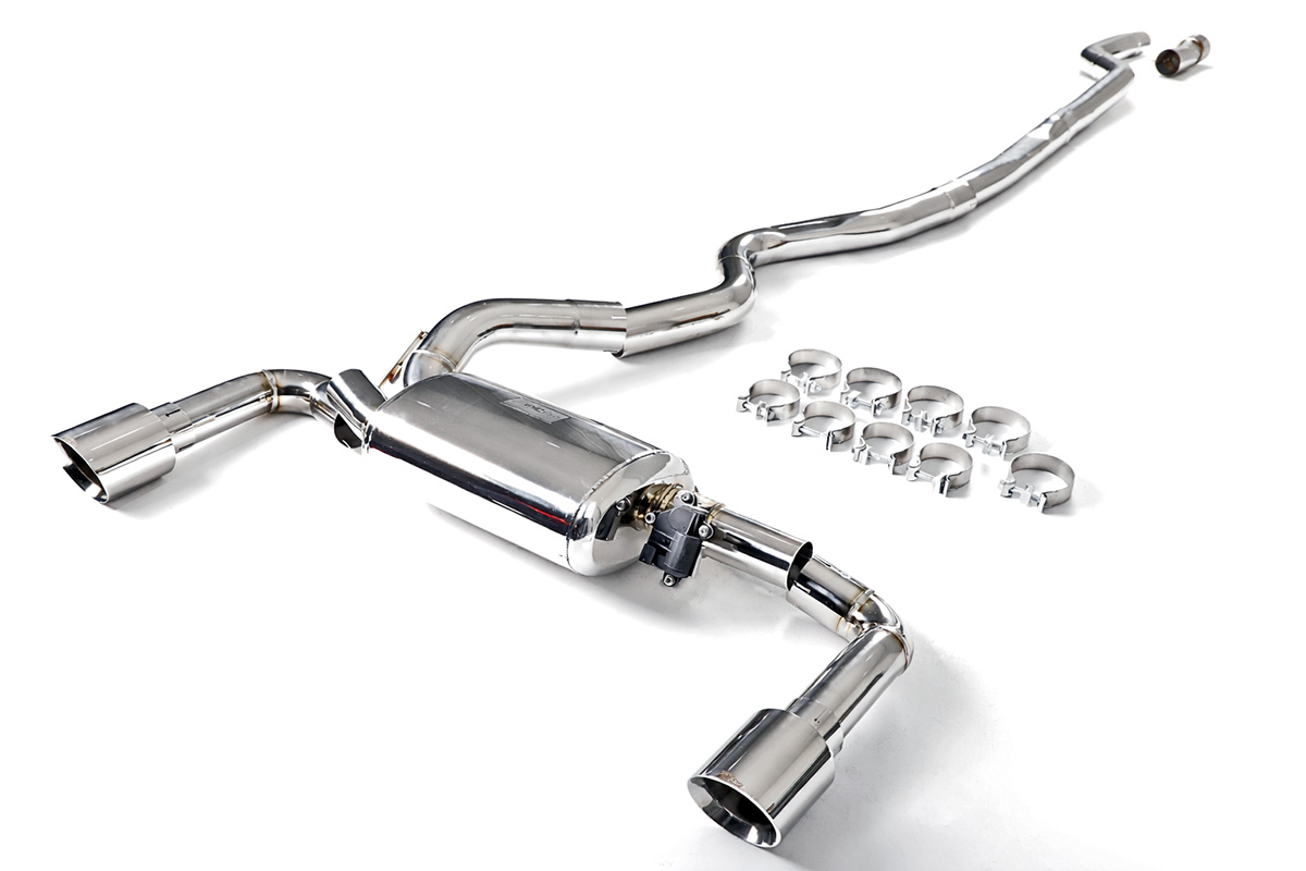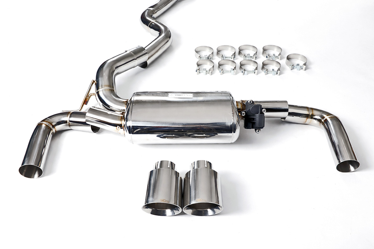 Aktywny układ wydechowy z klapami Cat-Back FMIC.Pro BMW Seria 3 F30 F31 320i 330i 2.0T B48 2015-2019 Dedykowany układ wydechowy FMIC.Pro typu cat-back został zaprojektowany w celu poprawy przepływu spalin oraz uzyskania wyraźnie bardziej sportowej charakterystyki dźwiękowej. Zastosowana średnica orurowania 76mm / 3.0” oraz konfiguracja tłumików zapewniają głębszy, bardziej nasycony dźwięk pod obciążeniem, przy zachowaniu komfortu podczas spokojnej jazdy -szczególnie w trybie zamkniętych klap. Układ wykonano w całości ze stali nierdzewnej SS304, odpornej na korozję i pracę w warunkach wysokiej temperatury. Orurowanie gięte na obrabiarkach CNC zapewnia powtarzalną geometrię oraz precyzyjne dopasowanie do seryjnych mocowań. Dzięki temu montaż jest prosty i odbywa na zasadzie plug & play. Połączenia spawane wykonywane są metodą TIG w osłonie argonu, dzięki czemu spoiny są czyste, estetyczne i w pełni szczelne - kluczowe dla niezawodności układu wydechowego. W miejscach połączeń kołnierzowych zastosowano flansze obrabiane w technologii CNC o grubości 10 mm. Zapewniają one wysoką sztywność połączenia, ograniczają ryzyko odkształceń wynikających z cykli termicznych i umożliwiają równomierny docisk uszczelnienia na całej powierzchni. Układ wyposażony jest w zintegrowane elektryczne klapy, umożliwiające zmianę drogi przepływu spalin w tylnej sekcji: Tryb zamknięty – spaliny przechodzą przez pełną sekcję tłumienia, co zapewnia bardziej stonowane brzmienie i wysoki komfort w codziennej eksploatacji. Tryb otwarty – spaliny omijają tłumik końcowy, co skutkuje głośniejszym, bardziej bezpośrednim i sportowym brzmieniem. Rozwiązanie to pozwala dopasować charakterystykę układu wydechowego do warunków oraz preferencji kierowcy. Sterowanie klapami odbywa się za pomocą dołączonego kontrolera oraz dwóch pilotów, umożliwiających szybkie przełączanie trybów pracy w dowolnym momencie. Dla uzyskania maksymalnego potencjału układu wydechowego FMIC.Pro zalecane jest połączenie układu cat-back z downpipe’em o zwiększonej przepustowości (szczególnie w jednostkach turbodoładowanych).Liczba końcówek wydechowych: 2 okrągłe Średnica: 76mm / 3.0” Silnik: 2.0 Turbo R4 B48N20 Dedykowany do: -BMW 320i F30 184 KM 2015–2018 -BMW 320i F31 184 KM 2015–2019 -BMW 330i F30 252 KM 2015–2018 -BMW 330i F31 252 KM 2015–2019