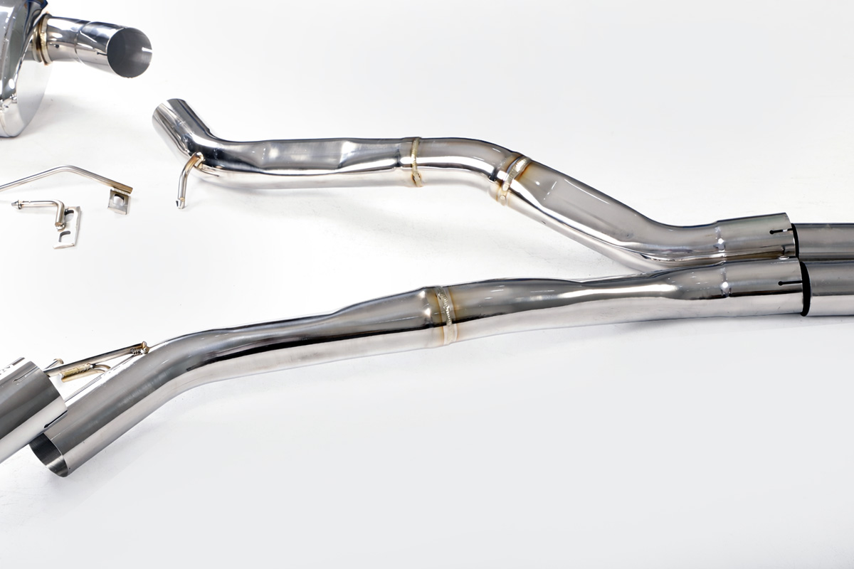 Aktywny układ wydechowy z klapami Cat-Back FMIC.Pro BMW Z4 E89 35i 35is 3.0T N54 2009-2016Dedykowany układ wydechowy FMIC.Pro typu cat-back został zaprojektowany w celu poprawy przepływu spalin oraz uzyskania wyraźnie bardziej sportowej charakterystyki dźwiękowej. Zastosowana średnica orurowania 70mm / 2.75” oraz konfiguracja tłumików zapewniają głębszy, bardziej nasycony dźwięk pod obciążeniem, przy zachowaniu komfortu podczas spokojnej jazdy -szczególnie w trybie zamkniętych klap. Układ wykonano w całości ze stali nierdzewnej SS304, odpornej na korozję i pracę w warunkach wysokiej temperatury. Orurowanie gięte na obrabiarkach CNC zapewnia powtarzalną geometrię oraz precyzyjne dopasowanie do seryjnych mocowań. Dzięki temu montaż jest prosty i odbywa na zasadzie plug & play. Połączenia spawane wykonywane są metodą TIG w osłonie argonu, dzięki czemu spoiny są czyste, estetyczne i w pełni szczelne - kluczowe dla niezawodności układu wydechowego. W miejscach połączeń kołnierzowych zastosowano flansze obrabiane w technologii CNC o grubości 10 mm. Zapewniają one wysoką sztywność połączenia, ograniczają ryzyko odkształceń wynikających z cykli termicznych i umożliwiają równomierny docisk uszczelnienia na całej powierzchni. Układ wyposażony jest w zintegrowane elektryczne klapy, umożliwiające zmianę drogi przepływu spalin w tylnej sekcji: Tryb zamknięty – spaliny przechodzą przez pełną sekcję tłumienia, co zapewnia bardziej stonowane brzmienie i wysoki komfort w codziennej eksploatacji. Tryb otwarty – spaliny omijają tłumik końcowy, co skutkuje głośniejszym, bardziej bezpośrednim i sportowym brzmieniem. Rozwiązanie to pozwala dopasować charakterystykę układu wydechowego do warunków oraz preferencji kierowcy. Sterowanie klapami odbywa się za pomocą dołączonego kontrolera oraz dwóch pilotów, umożliwiających szybkie przełączanie trybów pracy w dowolnym momencie. Dla uzyskania maksymalnego potencjału układu wydechowego FMIC.Pro zalecane jest połączenie układu cat-back z downpipe’em o zwiększonej przepustowości (szczególnie w jednostkach turbodoładowanych).Liczba końcówek wydechowych: 4 okrągłe Średnica: 70mm / 2.75” Silnik: 3.0 Twin-Turbo R6 (N54B30) Dedykowany do:-BMW Z4 sDrive35i (E89) 306 KM / 400 Nm 2009-2016 -BMW Z4 sDrive35is (E89) 340 KM / 450 Nm 2010-2016