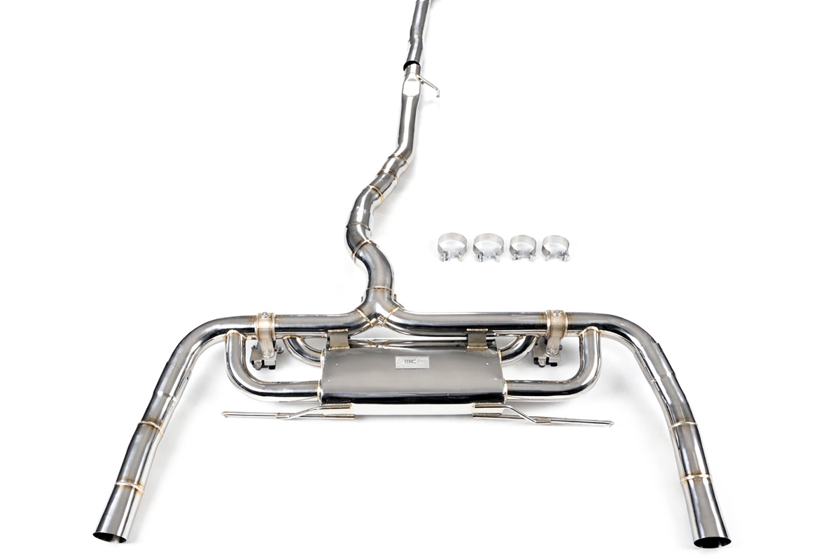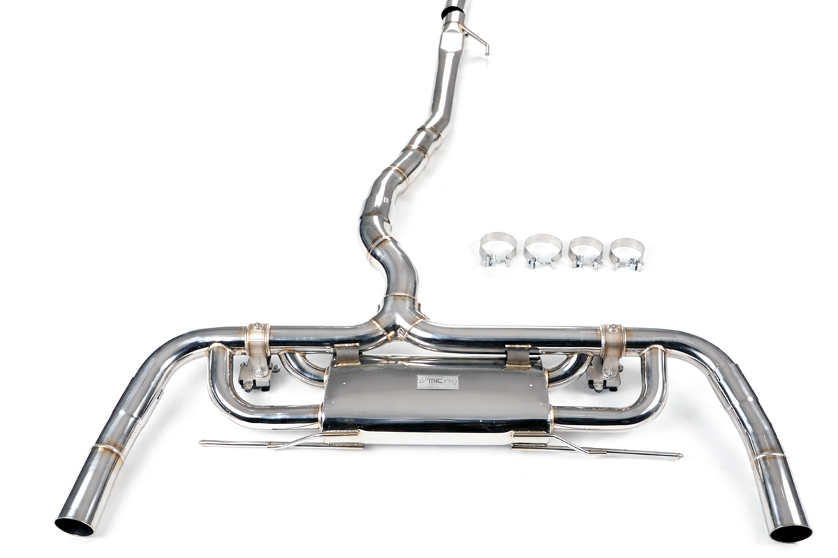Aktywny układ wydechowy z klapami Cat-Back FMIC.Pro Mercedes Benz CLA 45 S AMG C118 2.0T 2019-Dedykowany układ wydechowy FMIC.Pro typu cat-back został zaprojektowany w celu poprawy przepływu spalin oraz uzyskania wyraźnie bardziej sportowej charakterystyki dźwiękowej. Zastosowana średnica orurowania 76mm / 3.0” oraz konfiguracja tłumików zapewniają głębszy, bardziej nasycony dźwięk pod obciążeniem, przy zachowaniu komfortu podczas spokojnej jazdy -szczególnie w trybie zamkniętych klap. Układ wykonano w całości ze stali nierdzewnej SS304, odpornej na korozję i pracę w warunkach wysokiej temperatury. Orurowanie gięte na obrabiarkach CNC zapewnia powtarzalną geometrię oraz precyzyjne dopasowanie do seryjnych mocowań. Dzięki temu montaż jest prosty i odbywa na zasadzie plug & play. Połączenia spawane wykonywane są metodą TIG w osłonie argonu, dzięki czemu spoiny są czyste, estetyczne i w pełni szczelne - kluczowe dla niezawodności układu wydechowego. W miejscach połączeń kołnierzowych zastosowano flansze obrabiane w technologii CNC o grubości 10 mm. Zapewniają one wysoką sztywność połączenia, ograniczają ryzyko odkształceń wynikających z cykli termicznych i umożliwiają równomierny docisk uszczelnienia na całej powierzchni. Układ wyposażony jest w zintegrowane elektryczne klapy, umożliwiające zmianę drogi przepływu spalin w tylnej sekcji: Tryb zamknięty – spaliny przechodzą przez pełną sekcję tłumienia, co zapewnia bardziej stonowane brzmienie i wysoki komfort w codziennej eksploatacji. Tryb otwarty – spaliny omijają tłumik końcowy, co skutkuje głośniejszym, bardziej bezpośrednim i sportowym brzmieniem. Rozwiązanie to pozwala dopasować charakterystykę układu wydechowego do warunków oraz preferencji kierowcy. Sterowanie klapami odbywa się za pomocą dołączonego kontrolera oraz dwóch pilotów, umożliwiających szybkie przełączanie trybów pracy w dowolnym momencie. Dla uzyskania maksymalnego potencjału układu wydechowego FMIC.Pro zalecane jest połączenie układu cat-back z downpipe’em o zwiększonej przepustowości (szczególnie w jednostkach turbodoładowanych).Średnica: 76mm / 3.0” Silnik: 2.0 Turbo R4 (M139 DE20 AL) Dedykowany do: -Mercedes CLA45 4MATIC+ (C118) 387 KM / 480 Nm 2019-2023 -Mercedes CLA45 S 4MATIC+ (C118) 421 KM / 500 Nm 2019-
