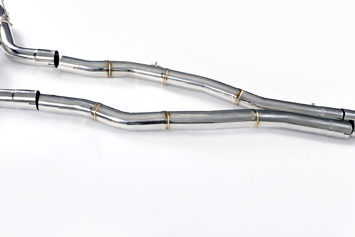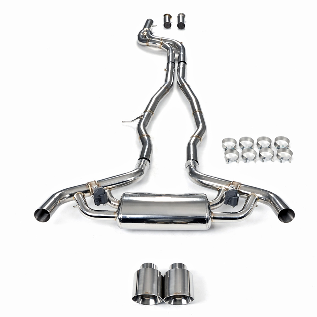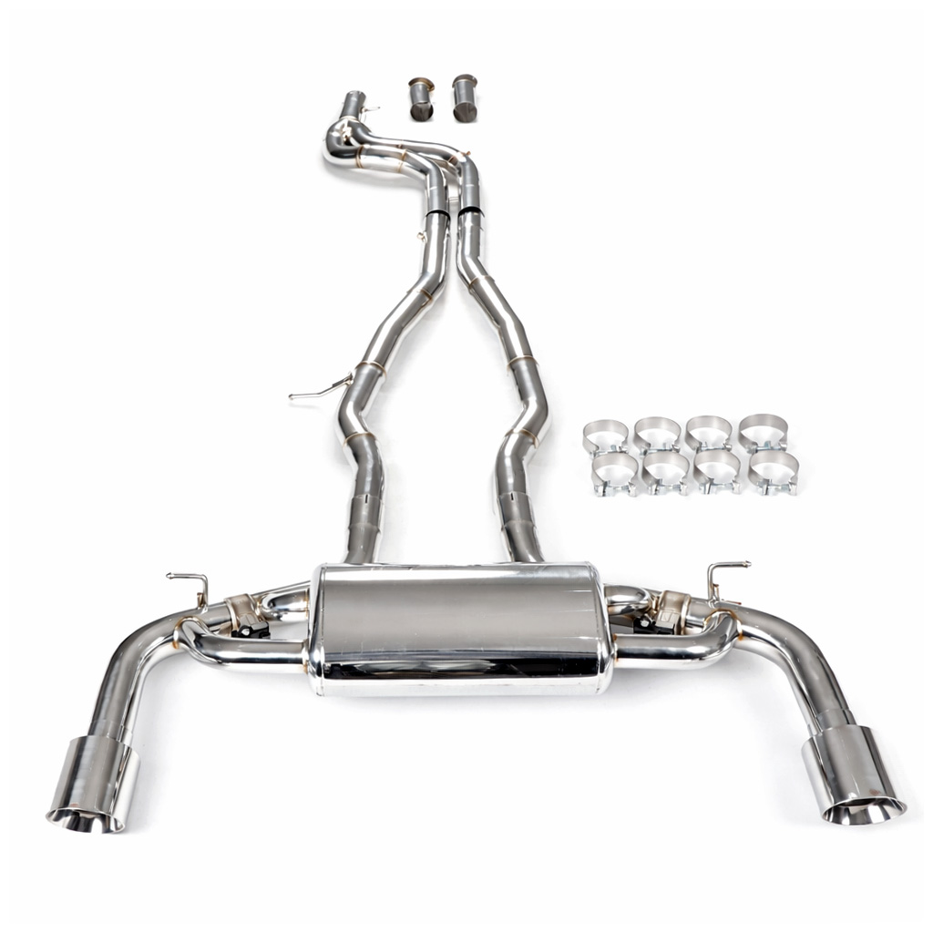 Aktywny układ wydechowy z klapami Cat-Back FMIC.Pro Toyota GR Supra MK5 A90 A91 3.0T 2019-2025Dedykowany układ wydechowy FMIC.Pro typu cat-back został zaprojektowany w celu poprawy przepływu spalin oraz uzyskania wyraźnie bardziej sportowej charakterystyki dźwiękowej. Zastosowana średnica orurowania 70mm / 2.75” oraz konfiguracja tłumików zapewniają głębszy, bardziej nasycony dźwięk pod obciążeniem, przy zachowaniu komfortu podczas spokojnej jazdy -szczególnie w trybie zamkniętych klap. Układ wykonano w całości ze stali nierdzewnej SS304, odpornej na korozję i pracę w warunkach wysokiej temperatury. Orurowanie gięte na obrabiarkach CNC zapewnia powtarzalną geometrię oraz precyzyjne dopasowanie do seryjnych mocowań. Dzięki temu montaż jest prosty i odbywa na zasadzie plug & play. Połączenia spawane wykonywane są metodą TIG w osłonie argonu, dzięki czemu spoiny są czyste, estetyczne i w pełni szczelne - kluczowe dla niezawodności układu wydechowego. W miejscach połączeń kołnierzowych zastosowano flansze obrabiane w technologii CNC o grubości 10 mm. Zapewniają one wysoką sztywność połączenia, ograniczają ryzyko odkształceń wynikających z cykli termicznych i umożliwiają równomierny docisk uszczelnienia na całej powierzchni. Układ wyposażony jest w zintegrowane elektryczne klapy, umożliwiające zmianę drogi przepływu spalin w tylnej sekcji: Tryb zamknięty – spaliny przechodzą przez pełną sekcję tłumienia, co zapewnia bardziej stonowane brzmienie i wysoki komfort w codziennej eksploatacji. Tryb otwarty – spaliny omijają tłumik końcowy, co skutkuje głośniejszym, bardziej bezpośrednim i sportowym brzmieniem. Rozwiązanie to pozwala dopasować charakterystykę układu wydechowego do warunków oraz preferencji kierowcy. Sterowanie klapami odbywa się za pomocą dołączonego kontrolera oraz dwóch pilotów, umożliwiających szybkie przełączanie trybów pracy w dowolnym momencie. Dla uzyskania maksymalnego potencjału układu wydechowego FMIC.Pro zalecane jest połączenie układu cat-back z downpipe’em o zwiększonej przepustowości (szczególnie w jednostkach turbodoładowanych).Liczba końcówek wydechowych: 2 okrągłe Średnica: 70mm / 2.75” Silnik: 3.0 Turbo R6 B58B30 Dedykowany do:- Toyota GR Supra 3.0 (A90) 340KM / 500Nm 2019-2020 - Toyota GR Supra 3.0 (A91) 387KM / 500Nm 2021-2024