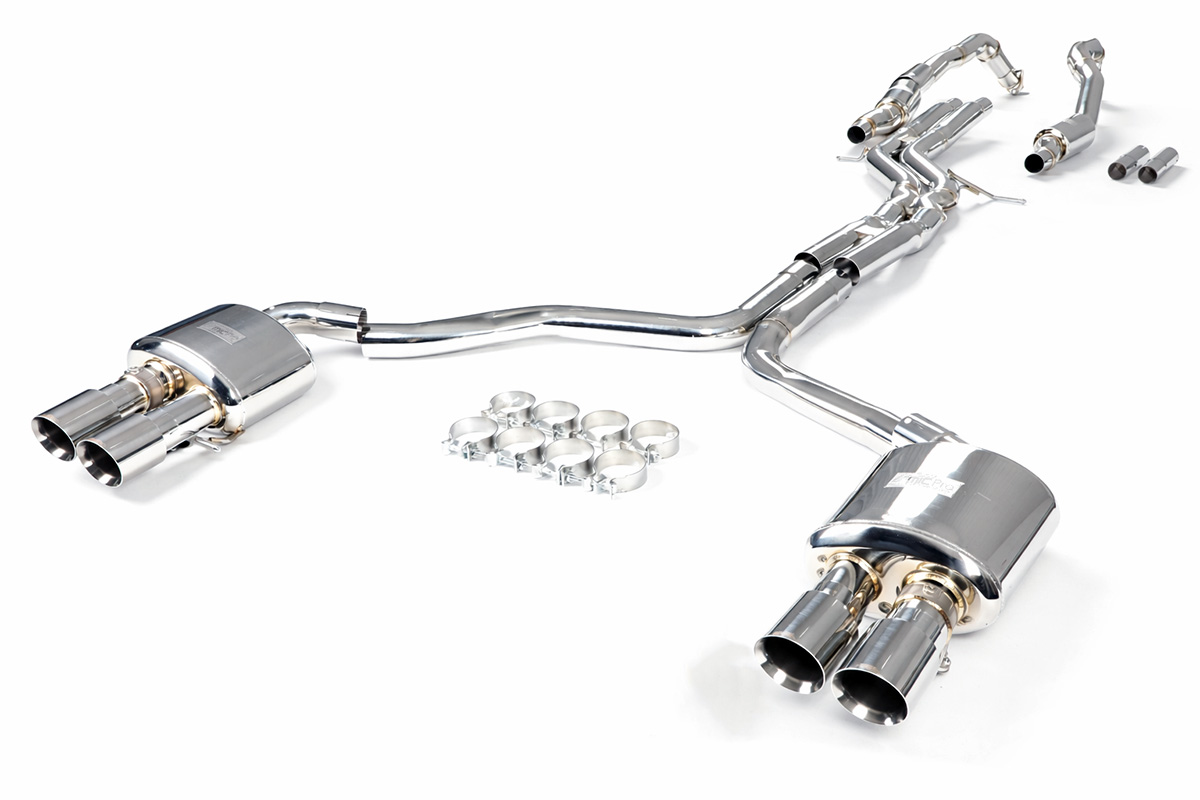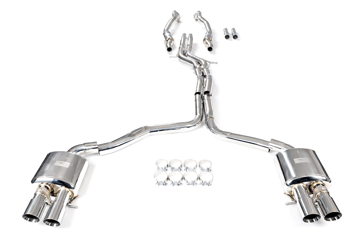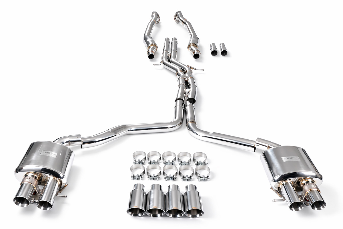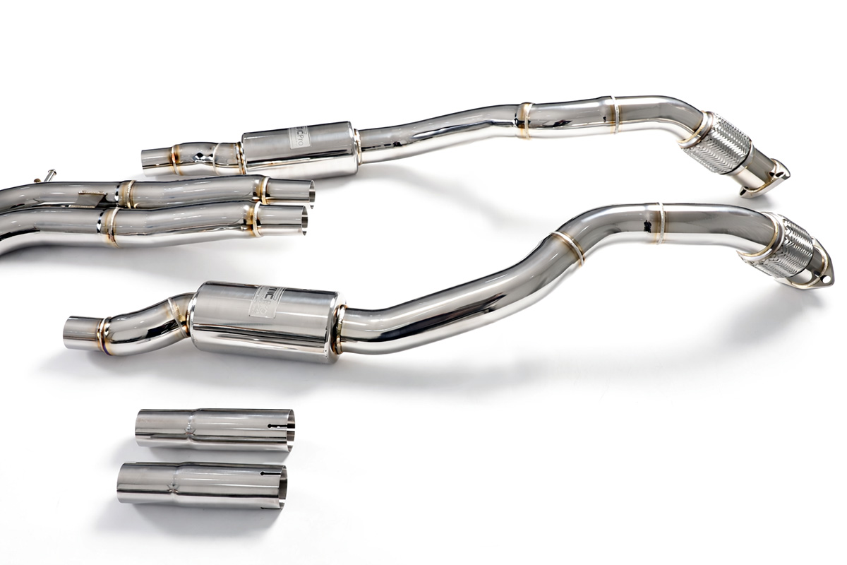 Aktywny układ wydechowy z klapami FMIC.Pro Audi A6 A7 C7 3.0 TFSI V6 2012-2018 Dedykowany układ wydechowy FMIC.Pro typu cat-back został zaprojektowany w celu poprawy przepływu spalin oraz uzyskania wyraźnie bardziej sportowej charakterystyki dźwiękowej. Zastosowana średnica orurowania 70mm / 2.75” oraz konfiguracja tłumików zapewniają głębszy, bardziej nasycony dźwięk pod obciążeniem, przy zachowaniu komfortu podczas spokojnej jazdy - szczególnie w trybie zamkniętych klap. Układ wykonano w całości ze stali nierdzewnej SS304, odpornej na korozję i pracę w warunkach wysokiej temperatury. Orurowanie gięte na obrabiarkach CNC zapewnia powtarzalną geometrię oraz precyzyjne dopasowanie do seryjnych mocowań. Dzięki temu montaż jest prosty i odbywa na zasadzie plug & play. Połączenia spawane wykonywane są metodą TIG w osłonie argonu, dzięki czemu spoiny są czyste, estetyczne i w pełni szczelne - kluczowe dla niezawodności układu wydechowego. W miejscach połączeń kołnierzowych zastosowano flansze obrabiane w technologii CNC o grubości 10 mm. Zapewniają one wysoką sztywność połączenia, ograniczają ryzyko odkształceń wynikających z cykli termicznych i umożliwiają równomierny docisk uszczelnienia na całej powierzchni. Układ wyposażony jest w zintegrowane elektryczne klapy, umożliwiające zmianę drogi przepływu spalin w tylnej sekcji: Tryb zamknięty – spaliny przechodzą przez pełną sekcję tłumienia, co zapewnia bardziej stonowane brzmienie i wysoki komfort w codziennej eksploatacji. Tryb otwarty – spaliny omijają tłumik końcowy, co skutkuje głośniejszym, bardziej bezpośrednim i sportowym brzmieniem. Rozwiązanie to pozwala dopasować charakterystykę układu wydechowego do warunków oraz preferencji kierowcy. Sterowanie klapami odbywa się za pomocą dołączonego kontrolera oraz dwóch pilotów, umożliwiających szybkie przełączanie trybów pracy w dowolnym momencie. Dla maksymalnego przepływu i wysokiej wydajności układu wydechowego zestaw FMIC.Pro zawiera downpipe o zwiększonej przepustowości. Po montażu wyraźnie poprawia się „dół” silnika, turbo wstaje szybciej, znika efekt tzw. turbo dziury, a jednostka lepiej buduje moc i moment obrotowy w całym zakresie.Liczba końcówek wydechowych: 4 okrągłe Średnica: 70mm / 2.75” Silnik: 3.0 TFSI V6 Supercharged Dedykowany do: -Audi A6 C7 2012-2018 -Audi A6 C7 Facelift 2015-2018 -Audi A7 C7 2012-2018 -Audi A7 C7 Facelift 2015-2018