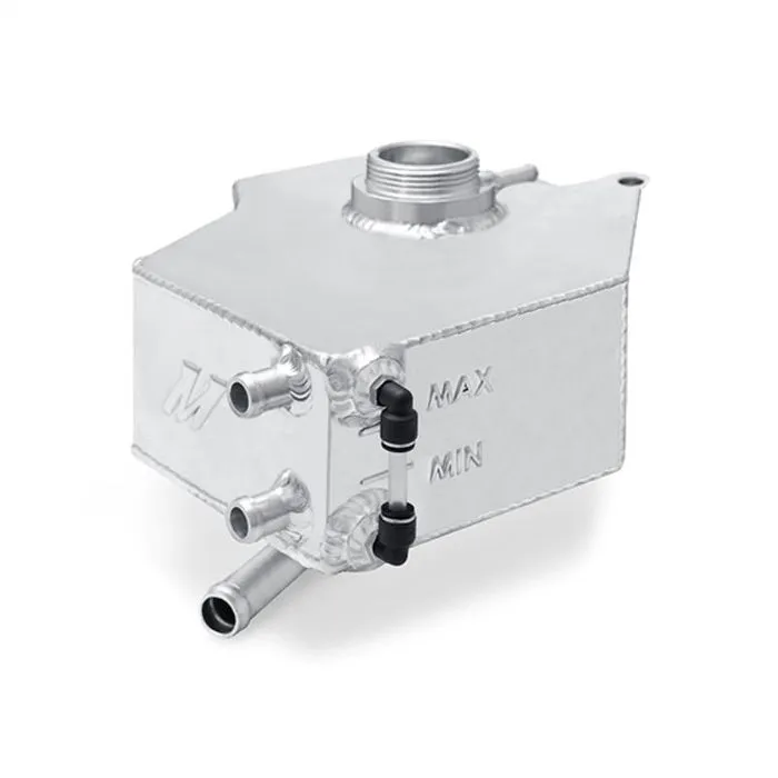 Add some additional reliability and engine bay styling with the Mishimoto Fiesta expansion tank. The Mishimoto Fiesta ST expansion tank has internal baffles to prevent coolant starvation from overflow ports to engine. Also, during high speed cornering, braking, and acceleration, the internal baffles reduce coolant sloshing. The engineers at Mishimoto have also included a sight glass to allow for proper hot and cold coolant levels. The stock coolant Fiesta expansion tank is major eye sore in the engine bay, so the Mishimoto tank is offered in polished or black powder coat to keep your Fiesta ST looking great. As an added feature, you can install your tank in under one hour! This Fiesta expansion tank was designed to work with the stock expansion tank cap and includes an overflow nipple on the fill neck for adding an additional coolant tank so your Fiesta ST is NHRA legal. Plastic expansion tanks are prone to failure after years of constant temperature variations, so the Mishimoto tank is constructed from durable, TIG-welded aluminum for optimal durability and longevity. The Mishimoto Fiesta expansion tank is engineered for perfect fitment in the 2014+ Fiesta ST, and as with all our Fiesta ST parts, this expansion tank includes the Mishimoto Lifetime Warranty.Direct fit for the 2014+ Ford Fiesta STInstalls in under one hourSight tube allows for proper hot and cold coolant levelsInternal baffle keeps coolant near overflow port during aggressive driving100% aluminum, fully-welded construction for maximum durability