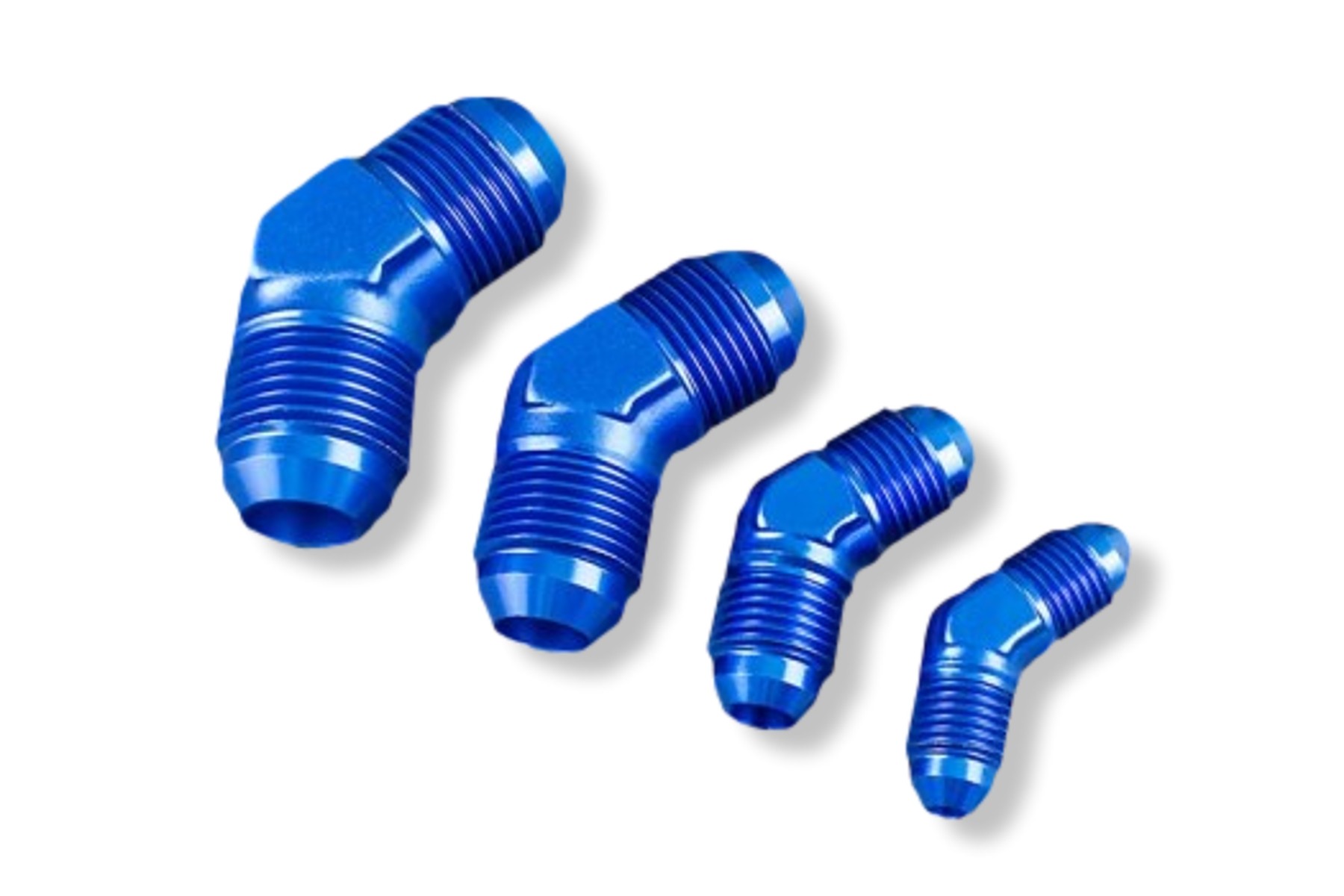 Nypel adapter męsko-męski 45' AN6-AN6 JIC. Nypel wielokrotnego użytku.