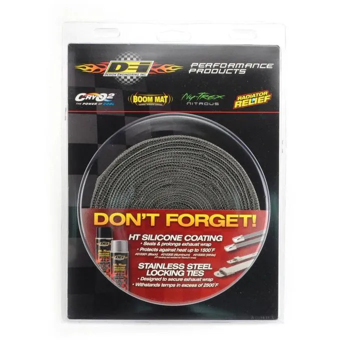 Bandaż termoizolacyjny DEI EXO series Black 4cm x 9m DEI 010058 USA-DEI-10058 Bandaż termiczny serii EXO rozwiązuje problem bardzo wysokich temperatur układu wydechowego w ekstremalnych warunkach, takich jak jazda terenowa i sporty motorowe. Bandaż z serii EXO jest przeznaczony do stosowania w ekstremalnych warunkach otoczenia. Tradycyjne bandaże termiczne nie są w stanie wytrzymać ekstremalnych warunków użytkowania, jakie panują podczas jazdy terenowej, na torze wyścigowym, na pustyni i wszędzie gdzie jest zwiększony kontakt z wodą i kurzem. Seria EXO to dwuwarstwowa konstrukcja, warstwa odpornego na temperaturę włókna szklanego pokrytego warstwą stali nierdzewnej 304. Ta unikalna konstrukcja utrzymuje wysoką ochronę cieplną, oferując jednocześnie doskonałą ochronę przed ścieraniem i uderzeniami. Nasza unikalna technologia Air Gap pozwala na bezpośredni kontakt włókna szklanego z owijaną gorącą powierzchnią tworząc izolującą barierę powietrzną. Bandaż termiczny z serii EXO ma szerokość 63.5mm (1,5"), co ułatwia montaż i czyni go idealnym środkiem do ochrony miejsc narażonych na silne uderzenia. Ponadto egzoszkielet ze stali nierdzewnej blokuje się po nałożeniu, dzięki czemu bandaż ściśle przylega do izolowanego elementu oraz ułatwia montaż. Zapewnia wyjątkowy wygląd, solidną wydajność oraz długotrwałą wytrzymałość. Dostępny w kolorze czarnym lub jasno-brązowym w rolkach 3.8cm x 3m, 6m, 9m (1,5" x 10 feet, 20 feet lub 30 feet). UWAGA: Owijanie katalizatora nie jest zalecane, ponieważ przegrzanie może prowadzić do skrócenia jego żywotności. Zamiast tego rekomendujemy Catalytic Converter Shield lub użycie naszego systemu Floor & Tunnel Shield II™. Uwaga: Bandaż nie jest przeznaczonz do zdejmowania i ponownego użycia po wygrzaniu. Włókna po wygrzaniu tracą swoją początkową elastyczność. Nie zmniejsza to ich właściwości termicznych. Należy o tym pamiętać przed podjęciem decyzji o zdjęciu bandaża. Z tego powodu należy unikać owijania bandażem rurek i złączy elastycznych. Uwaga na temat układów wydechowych z tytanu: DEI nie zaleca owijania układów wydechowych wykonanych z tytanu. Aluminium używane do produkcji tytanowych układów wydechowych jest zazwyczaj cienkie i szybko odprowadza ciepło. Owijanie jakiejkolwiek rury wydechowej wykonanej z tytanu, niezależnie od marki, nie jest zalecane. Zbyt duża ilość nieodprowadzonego ciepła może sprawić, że stanie się kruchy i podatny na przedwczesne pękanie. Do redukcji ciepła w tym przypadku DEI zaleca stosowanie alternatyw, takich jak elastyczne osłony termiczne DEI. Odporność na ciepło bezpośrednie: 649°C (1200°F) Odporność na promieniowanie cieplne: 1093°C (2000°F)