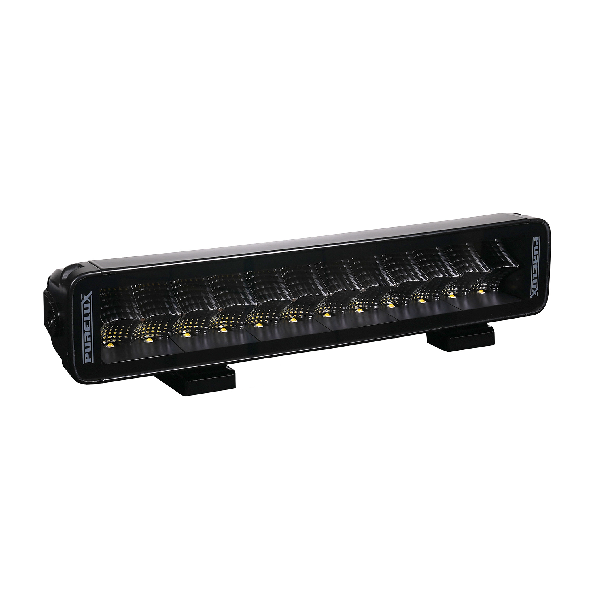 Purelux Terrain Curve 120W – zakrzywiona lampa robocza LED Purelux Terrain Curve 120W to najmniejszy model z serii Purelux Terrain Curve, zaprojektowanej do zakrzywionego oświetlenia roboczego. Lampa robocza o długości 36 cm charakteryzuje się zakrzywioną konstrukcją, dzięki czemu doskonale nadaje się do montażu w ciasnych przestrzeniach oraz na mniejszych maszynach roboczych, takich jak koparki, quady czy inne pojazdy terenowe. Pomimo kompaktowych rozmiarów model Terrain Curve 120W oferuje imponującą wydajność – według producenta teoretyczny strumień świetlny sięga aż 10 080 lumenów, co stanowi doskonały stosunek mocy do rozmiaru. Zastosowana technologia reflektora, oparta na kilku rowkowanych powierzchniach, zapewnia bardzo równomierny i szeroki wzór światła bez ciemnych punktów w bezpośrednim obszarze pracy. Dzięki temu lampa skutecznie oświetla przestrzeń z bliskiej odległości, tworząc bezpieczne i komfortowe środowisko pracy. Zakrzywiona konstrukcja dodatkowo kieruje naturalny strumień światła również na boki, oferując szersze pole oświetlenia w porównaniu do prostych lamp roboczych. Z tego względu Purelux Terrain Curve 120W jest idealnym wyborem dla użytkowników poszukujących kompaktowej, a jednocześnie bardzo wydajnej lampy roboczej o szerokim kącie świecenia. Lampa robocza Purelux Terrain Curve 120W została zaprojektowana z myślą o pracy w trudnych warunkach. Solidna, malowana proszkowo i odporna na promieniowanie UV aluminiowa obudowa oraz praktycznie niezniszczalna soczewka z poliwęglanu gwarantują wysoką trwałość i odporność na intensywne użytkowanie. Całkowicie płaska konstrukcja przednia eliminuje ramkę wokół soczewki, zapobiegając gromadzeniu się śniegu, lodu i zabrudzeń, dzięki czemu lampa zachowuje pełną skuteczność nawet w niesprzyjających warunkach pogodowych. Klasa szczelności IP67 zapewnia pełną ochronę przed pyłem i wodą, a całość objęta jest 24-miesięczną gwarancją producenta. Terrain Curve 120W wyposażona jest zarówno w klasyczne mocowania boczne, jak i regulowane uchwyty szynowe pod lampą, co daje niemal nieograniczone możliwości montażu. Złącze DT-2 zamontowane fabrycznie na przewodzie ułatwia instalację, a szeroki zakres napięcia roboczego 10–30 V pozwala na zastosowanie lampy zarówno w instalacjach 12 V, jak i 24 V. Lampa spełnia wymagania kompatybilności elektromagnetycznej zgodnie z normą ECE R10.