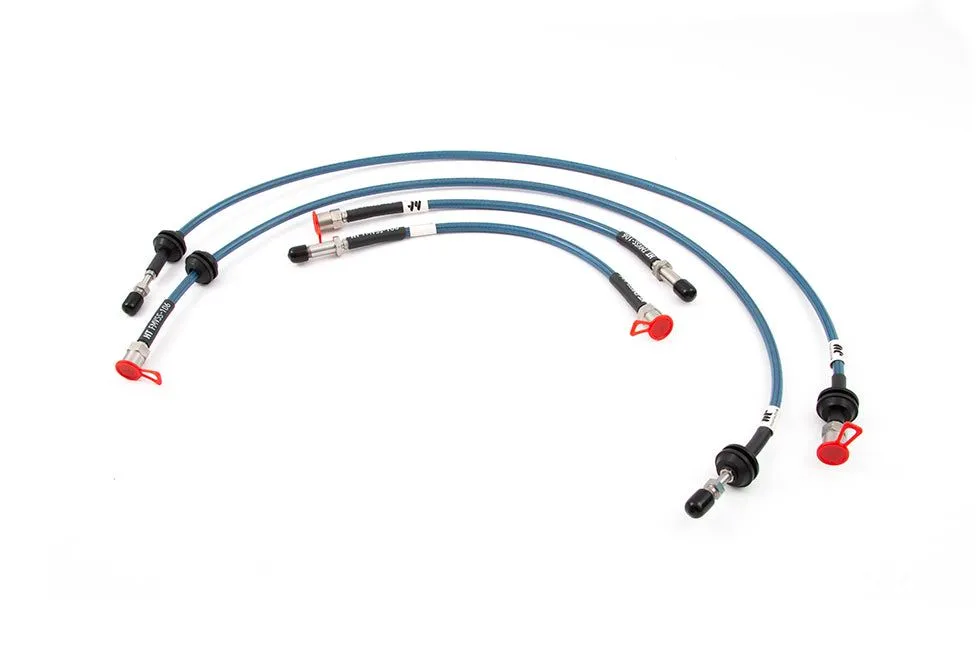 Each brake line is hand built in house at our workshops in Gloucester (UK) using only the best available 95PVC coated Stainless steel braided PTFE hoses and machined Stainless Steel end fittings resulting in a brake hose that will perform under the most extreme and harsh conditions, whilst still looking good and perform at the highest level.