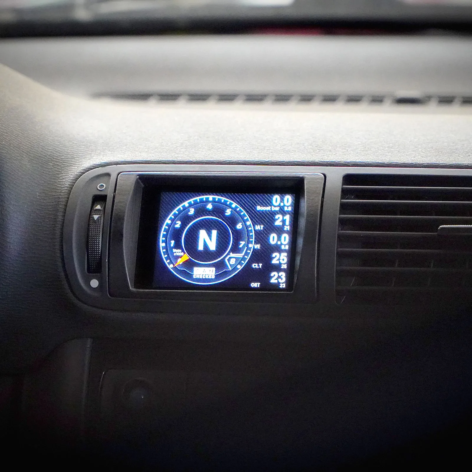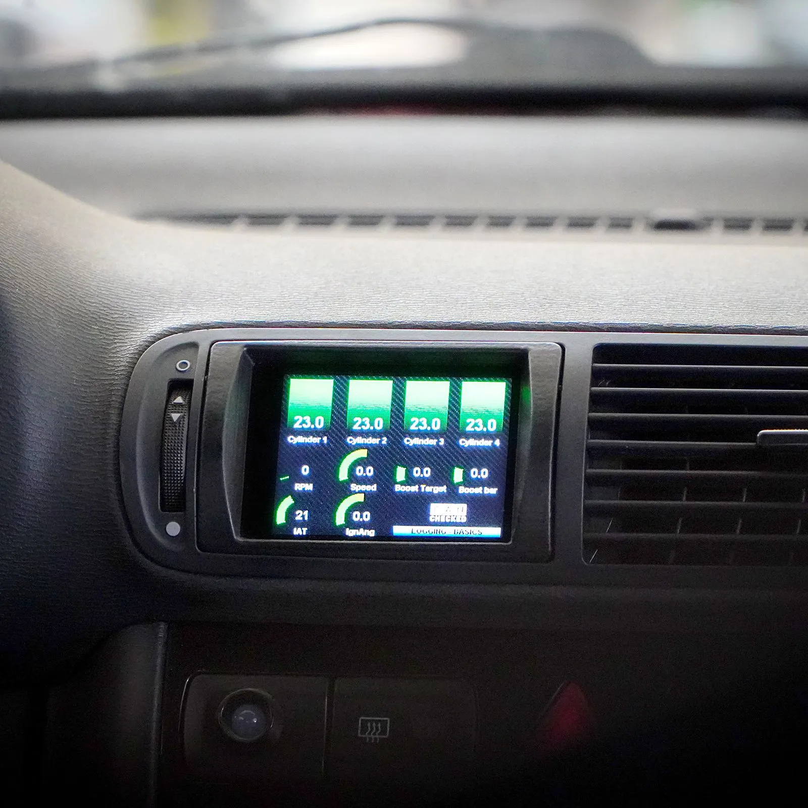 The vehicle-specific CANchecked MFD32 Gen2 for your Seat Leon/Cupra 1M - perfectly integrated and all data always in view The MFD32 Gen2 transforms your air vent into an intelligent display with features you don't want to miss. Our displays are designed so that they can be installed by anyone. For most displays there are illustrated installation instructions, so you can install your display yourself without the need of any workshop. Key Features Perfect integration: The vehicle-specific bezel still allows airflow past the display Can Bus: Readout of in-depth vehicle data such as manufacturer diagnostic tools Gear display: Directly via Can Bus or calculated from speed and rpm Touchscreen: Navigate through pages using intuitive swipe gestures Customization: Design your own pages, add your own pictures or start animation Additional inputs: Connect up to 4 analog inputs and an ethanol sensor directly to the display Can Switching: Use your display as a keypad and send your own can messages to the bus Customizable Alarms: Customizable alarms can be easily configured and activated. For example, get a big warning message when the exhaust gas temperature is above 900 degrees Logging: Log and save your data to the internal SD card for later analysis. Performance Meter: Measure your 0-100, 100-200 and 0-200 times with the integrated performance meter without any additional hardware. DTC*: Read and clear the errors of engine control unit, transmission, ABS and all-wheel drive Dimming*: Your display automatically dims along with the instrument panel Different views Configure your own page or choose from several predefined views: The display is delivered with predefined sample pages Creation of own pages possible and wished Up to ten pages possible 20 different widget types (e.g. sensor value, analogue pointer, YT diagram, speed bar, round display, vertical/horizontal bar) Widgets can be scaled in size and positioned using drag and drop Colours of the widgets fully adjustable Up to 64 widgets per page Display Setup Software - DSS With the CANchecked DSS you can fully customize your display. With the integrated log viewer you can download and view log files. Furthermore, a Can-Logger is integrated. The heart is the integrated TRI Editor with which you can adjust the sensors (no matter if Can Bus or internal): Assign min-/max-values for warnings and change the names of your sensors. Supported values Many customers always ask: Which values can I get from my ECU. The answer: ALL. We have reverse-engineered the data for most engines here and can offer in-depth data. Our display supports Can Bus data query (UDS, TP2, manufacturer specific protocols) as well as data query via K-Line (ISO 9141). By default, your display is delivered with predefined TRI/TRX files. In the files, all sensors are defined, which are queried. These are different from engine to engine. Here is an extract of what is possible: Temperatures: Exhaust temperature, coolant temperature, oil temperature, intake temperature, outside temperature, gasoline temperature, DSG-temperature. Pressures: Boost pressure, ambient pressure, fuel pressure pre-feed pump, rail pressure actual/target. Lambda/mixture Lambda value, injection time, short term lambda adjustment, long term lambda adjustment Other RPM, air mass, vehicle speed, throttle angle, total ignition angle, ignition angle retraction per cylinder, N75 timing in %, terminal 30 voltage, torque, gear, diesel specific values If values are missing, they can be added later. Scope of delivery Included with every delivery MFD32 Gen2 data display integrated in the ventilation insert for LHD vehicles Connector A (8-way Molex) Connector B (10-way Molex) Different coloured pre-assembled connection cables (length: 20 cm, intended use: power supply, Can Bus, analogue inputs, 5V, sensor ground) Pins for crimping yourself Two 1K resistors (as pull-up for connecting external NTC sensors) Quickstart Guide USB data cable SD card (pre-installed to the display) SD card adapter Display foil (to prevent reflections) Connection and extension Any sensors can be connected via the four analog inputs - we support linear 0-5V as well as NTC sensors.Our in-house CANchecked sensors are stored in the TRI-/TRX-files by default and only need to be connected: AIN1: Temperature sensor (NTC01) AIN2: Transducer for exhaust gas temperature sensor type K (TCC01) AIN3: Pressure sensor 0-10 Bar (FLP01) AIN4: boost pressure sensor 0-5,5 Bar absolute (BST01) For the connection you can use our pre-assembled AIN wiring harness. Beside the analog sensors you can also connect our external shift light with eight LEDs. This can flash in different colors and the speed limits and colors can be configured directly on the display. You connect the ethanol sensor directly to the display. You need a pullup resistor (10K) between 5V and the signal. Then you can view and log the ethanol content and temperature directly on the display. Advanced functions With the Math-Channels you can calculate sensors with each other. The User-Table gives you the possibility to generate further sensors with 2D or 3D maps. Optional accessories CC24000 SLM08 - external switching lightning module CC22780 ANC04 - four-way AIN-harness CC22100 CBD08 - eight-way Can Distribution Hub CC22902 NTC01 - temperature sensor for liquids 1/ inch" NPT CC22903 TCC01 - type K converter 0-1250°C CC22901 FLP01 - Pressure sensor 0-10 Bar (145psi) M10x1 CC22900 BST01 - Pressure sensor 0-5,5 Bar absolute (80psi) *not available on all protocols