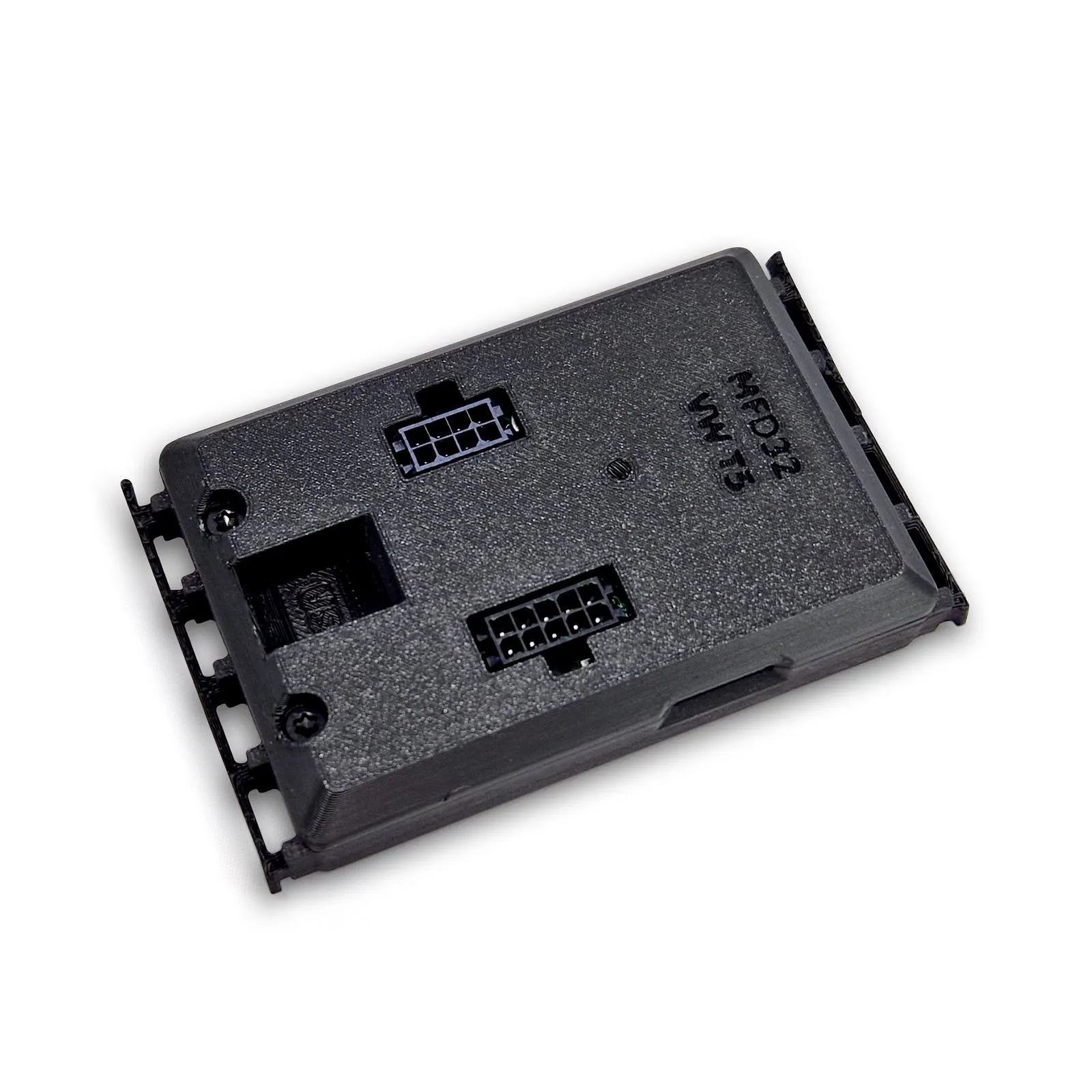 The vehicle-specific CANchecked MFD32 Gen2 for your VW Bus T5 - perfectly integrated and all data always in view The MFD32 Gen2 transforms your air vent into an intelligent display with features you don't want to miss. Our displays are designed so that they can be installed by anyone. For most displays there are illustrated installation instructions, so you can install your display yourself without the need of any workshop. Key Features Perfect integration: The vehicle-specific bezel still allows airflow past the display Can Bus: Readout of in-depth vehicle data such as manufacturer diagnostic tools Gear display: Directly via Can Bus or calculated from speed and rpm Touchscreen: Navigate through pages using intuitive swipe gestures Customization: Design your own pages, add your own pictures or start animation Additional inputs: Connect up to 4 analog inputs and an ethanol sensor directly to the display Can Switching: Use your display as a keypad and send your own can messages to the bus Customizable Alarms: Customizable alarms can be easily configured and activated. For example, get a big warning message when the exhaust gas temperature is above 900 degrees Logging: Log and save your data to the internal SD card for later analysis. Performance Meter: Measure your 0-100, 100-200 and 0-200 times with the integrated performance meter without any additional hardware. DTC*: Read and clear the errors of engine control unit, transmission, ABS and all-wheel drive Dimming*: Your display automatically dims along with the instrument panel Different views Configure your own page or choose from several predefined views: The display is delivered with predefined sample pages Creation of own pages possible and wished Up to ten pages possible 20 different widget types (e.g. sensor value, analogue pointer, YT diagram, speed bar, round display, vertical/horizontal bar) Widgets can be scaled in size and positioned using drag and drop Colours of the widgets fully adjustable Up to 64 widgets per page Display Setup Software - DSS With the CANchecked DSS you can fully customize your display. With the integrated log viewer you can download and view log files. Furthermore, a Can-Logger is integrated. The heart is the integrated TRI Editor with which you can adjust the sensors (no matter if Can Bus or internal): Assign min-/max-values for warnings and change the names of your sensors. Supported values Many customers always ask: Which values can I get from my ECU. The answer: ALL. We have reverse-engineered the data for most engines here and can offer in-depth data. Our display supports Can Bus data query (UDS, TP2, manufacturer specific protocols) as well as data query via K-Line (ISO 9141). By default, your display is delivered with predefined TRI/TRX files. In the files, all sensors are defined, which are queried. These are different from engine to engine. Here is an extract of what is possible: Temperatures: Exhaust temperature, coolant temperature, oil temperature, intake temperature, outside temperature, gasoline temperature, DSG-temperature. Pressures: Boost pressure, ambient pressure, fuel pressure pre-feed pump, rail pressure actual/target. Lambda/mixture Lambda value, injection time, short term lambda adjustment, long term lambda adjustment Other RPM, air mass, vehicle speed, throttle angle, total ignition angle, ignition angle retraction per cylinder, N75 timing in %, terminal 30 voltage, torque, gear, diesel specific values If values are missing, they can be added later. Scope of delivery Included with every delivery MFD32 Gen2 data display integrated in the ventilation insert for LHD&RHD vehicles vehicle-specific connection cable Quickstart Guide USB data cable SD card (pre-installed to the display) SD card adapter Display foil (to prevent reflections) Connection and extension Any sensors can be connected via the four analog inputs - we support linear 0-5V as well as NTC sensors.Our in-house CANchecked sensors are stored in the TRI-/TRX-files by default and only need to be connected: AIN1: Temperature sensor (NTC01) AIN2: Transducer for exhaust gas temperature sensor type K (TCC01) AIN3: Pressure sensor 0-10 Bar (FLP01) AIN4: boost pressure sensor 0-5,5 Bar absolute (BST01) For the connection you can use our pre-assembled AIN wiring harness. Beside the analog sensors you can also connect our external shift light with eight LEDs. This can flash in different colors and the speed limits and colors can be configured directly on the display. You connect the ethanol sensor directly to the display. You need a pullup resistor (10K) between 5V and the signal. Then you can view and log the ethanol content and temperature directly on the display. Advanced functions With the Math-Channels you can calculate sensors with each other. The User-Table gives you the possibility to generate further sensors with 2D or 3D maps. Optional accessories CC24000 SLM08 - external switching lightning module CC22780 ANC04 - four-way AIN-harness CC22100 CBD08 - eight-way Can Distribution Hub CC22902 NTC01 - temperature sensor for liquids 1/8 inch NPT CC22903 TCC01 - type K converter 0-1250°C CC22901 FLP01 - Pressure sensor 0-10 Bar (145psi) M10x1 CC22900 BST01 - Pressure sensor 0-5,5 Bar absolute (80psi) *not available on all protocols