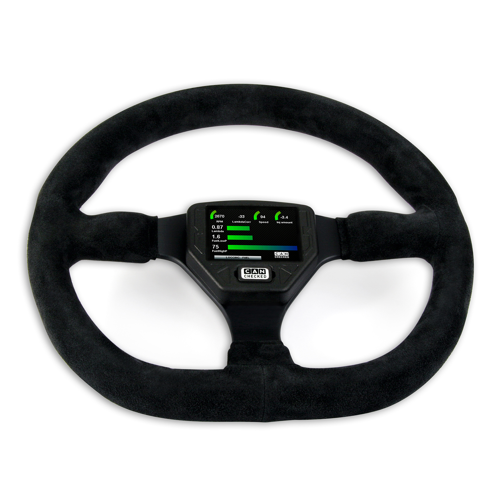 Wyświetlacz danych CANchecked SWD32 Gen2 to nowoczesne rozwiązanie, które pozwala mieć wszystkie kluczowe parametry pojazdu zawsze pod kontrolą. Model ten pasuje do każdej płaskiej kierownicy z mocowaniem 6x70 mm i stanowi inteligentny wyświetlacz o szerokim zakresie funkcji, których nie będziesz chciał się pozbyć. Lekka obudowa z tworzywa sztucznego o symetrycznym kształcie umożliwia montaż w pozycji pionowej lub poziomej. Najważniejsze cechy Kompaktowe wymiary: 89,5 × 60,5 × 19,5 mm (bez złącza) CAN Bus: odczyt szczegółowych danych pojazdu jak w fabrycznych narzędziach diagnostycznych Wskaźnik biegu: bezpośrednio z CAN Bus lub obliczany na podstawie prędkości i obrotów Ekran dotykowy: intuicyjna obsługa poprzez gesty przesuwania Personalizacja: możliwość tworzenia własnych ekranów, dodawania grafik i animacji Dodatkowe wejścia: do 4 wejść analogowych oraz czujnik etanolu podłączany bezpośrednio CAN Switching: użyj wyświetlacza jako klawiatury – wysyłaj własne komunikaty do magistrali Alarmy: definiowane przez użytkownika ostrzeżenia (np. komunikat przy temperaturze spalin powyżej 900°C) Rejestracja danych: zapis logów na karcie SD do późniejszej analizy Performance Meter: pomiar przyspieszenia 0–100 / 100–200 / 0–200 km/h bez dodatkowego sprzętu DTC*: odczyt i kasowanie błędów ECU, skrzyni biegów, ABS i napędu AWD Automatyczne przyciemnianie*: jasność wyświetlacza dostosowuje się do podświetlenia zegarów *w zależności od obsługi protokołu Widoki i konfiguracja Możliwość wyboru z gotowych ekranów lub tworzenie własnych (do 10 stron) Ponad 20 typów widżetów (m.in. wykresy, wskazówki, paski, wartości numeryczne) Swobodne skalowanie i rozmieszczanie elementów metodą przeciągnij i upuść Pełna regulacja kolorów widżetów Do 64 elementów na jednej stronie Oprogramowanie DSS Z pomocą CANchecked Display Setup Software (DSS) użytkownik może w pełni dostosować wyświetlacz. Zintegrowany Log Viewer umożliwia analizę zapisanych danych, a CAN Logger rejestruje ruch na magistrali. Wbudowany edytor TRI Editor pozwala definiować sensory (CAN lub wewnętrzne), ustalać progi ostrzeżeń oraz zmieniać nazwy czujników. Obsługiwane dane i protokoły Wyświetlacz obsługuje odczyt wszystkich danych z ECU przez CAN Bus (UDS, TP2, protokoły producentów) oraz K-Line (ISO 9141). Dostarczany jest z plikami TRI/TRX, które definiują zestaw czujników dla danego silnika. Przykładowe parametry: Temperatury: spalin, cieczy chłodzącej, oleju, powietrza, paliwa, DSG Ciśnienia: doładowania, paliwa, szyny, otoczenia Lambda i mieszanka: korekty, czas wtrysku, wartości lambda Inne: prędkość, masa powietrza, kąt zapłonu, napięcie, moment, bieg, itp. Kompatybilność z ECU Obsługiwane sterowniki: DTA Fast, Ecumaster, Emerald, Emtron, Haltech, Hondata, KMS, LinkECU, MaxxECU, MBE, Megasquirt, Motec, Motorsport Electronics, Syvecs, Trijekt, VEMS. Zawartość zestawu Wyświetlacz SWD32 Gen2 z obudową z tworzywa sztucznego Złącza Molex A (8-pin) i B (10-pin) Przewody połączeniowe w kolorach (20 cm, zasilanie, CAN, wejścia analogowe, 5V, masa czujników) Piny do samodzielnego zaciskania Dwa rezystory 1K (dla zewnętrznych czujników NTC) Instrukcja szybkiego startu Kabel USB, karta SD z adapterem Folia ochronna ekranu Rozszerzenia i czujniki Do czterech wejść analogowych można podłączyć czujniki liniowe 0–5V lub NTC. Standardowo w plikach TRI/TRX znajdują się czujniki CANchecked: AIN1: czujnik temperatury (NTC01) AIN2: przetwornik temperatury spalin typ K (TCC01) AIN3: czujnik ciśnienia 0–10 bar (FLP01) AIN4: czujnik ciśnienia doładowania 0–5,5 bar abs. (BST01) Można również podłączyć zewnętrzne shift light (8 diod LED) z pełną konfiguracją kolorów i progów obrotów oraz czujnik etanolu, który po zastosowaniu rezystora 10K między 5V a sygnałem umożliwia odczyt i zapis zawartości etanolu i temperatury paliwa. Funkcje zaawansowane Math Channels: obliczenia pomiędzy czujnikami User Table: generowanie dodatkowych czujników na podstawie map 2D/3D Akcesoria opcjonalne CC10001 GPA32 – adapter 52 mm do uchwytu SWD32(S) CC24000 SLM08 – zewnętrzny moduł świetlny CC22780 ANC04 – 4-drożna wiązka AIN CC22100 CBD08 – 8-drożny rozdzielacz CAN CC22902 NTC01 – czujnik temperatury cieczy 1/8” NPT CC22903 TCC01 – przetwornik typu K 0–1250°C CC22901 FLP01 – czujnik ciśnienia 0–10 bar (145 psi) M10x1 CC22900 BST01 – czujnik ciśnienia 6,5 bar relatywny (95 psi)