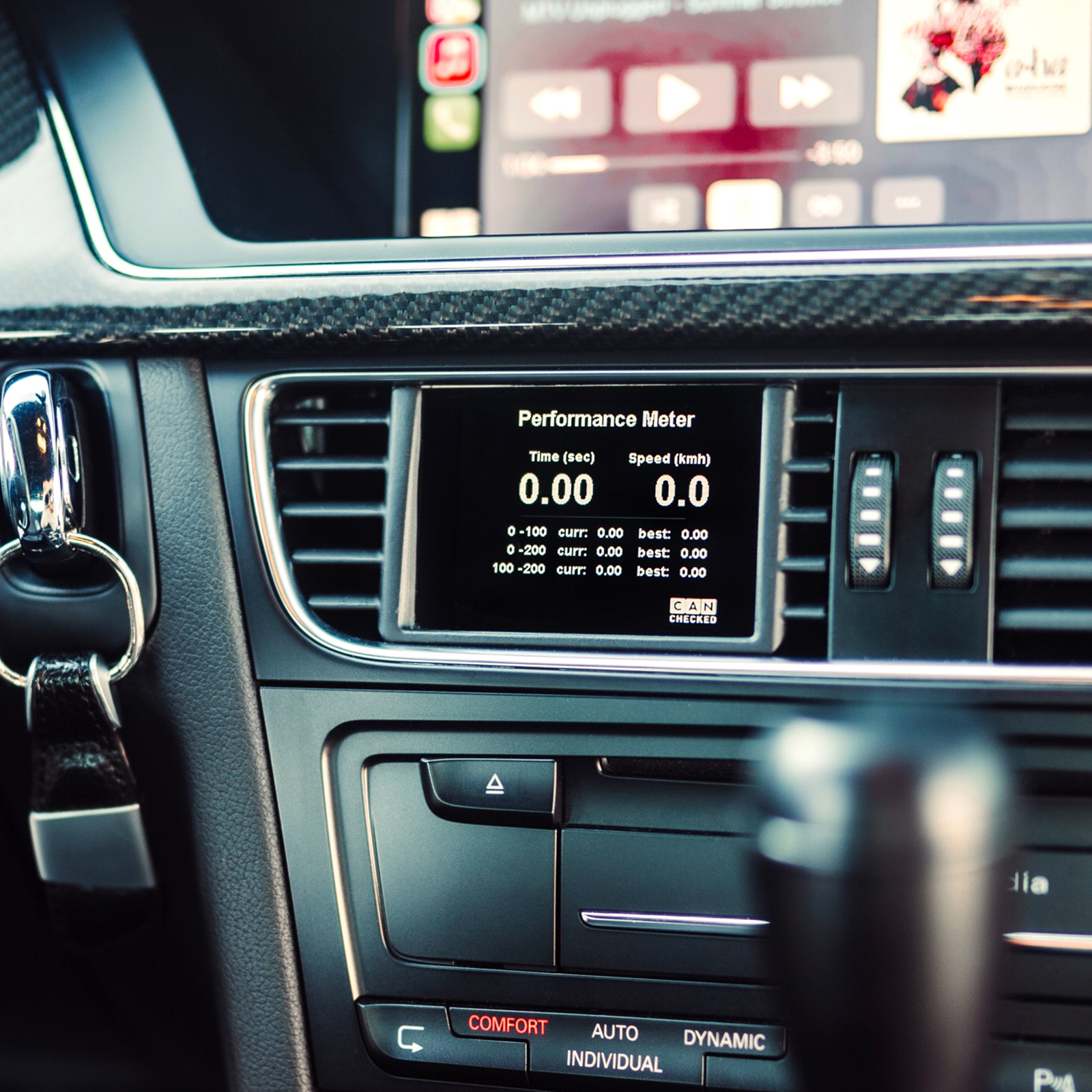 Dedykowany CANchecked Multi Function Display MFD28 Gen2 do Audi A4 B8 i A5 8T (8K) idealnie integruje się z kratką nawiewu, tworząc inteligentny, zaawansowany wyświetlacz z pełnym dostępem do danych pojazdu. Montaż jest prosty, a szczegółowa instrukcja pozwala na instalację bez wizyty w warsztacie. Najważniejsze cechy Perfekcyjna integracja: Specjalnie zaprojektowana ramka umożliwia dalszy przepływ powietrza wokół wyświetlacza. CAN Bus: Odczyt zaawansowanych danych pojazdu – jak w fabrycznych testerach diagnostycznych (UDS, TP2, protokoły producenta). Wyświetlanie biegu: Bezpośrednio z magistrali CAN lub obliczane z prędkości i obrotów. Ekran dotykowy: Sterowanie gestami (swipe) i szybka nawigacja między stronami. Pełna personalizacja: Tworzenie własnych stron, dodawanie grafik, ikon i animacji startowych. Dodatkowe wejścia: 4 wejścia analogowe + możliwość podłączenia czujnika etanolu. CAN Switching: Wysyłanie własnych wiadomości CAN – wyświetlacz działa jako klawiatura CAN. Alarmy: Dowolnie konfigurowane ostrzeżenia (np. EGT powyżej 900°C). Rejestracja danych: Logowanie na wewnętrzną kartę SD. Performance Meter: Pomiar 0–100, 100–200 i 0–200 km/h bez dodatkowego sprzętu. DTC*: Odczyt i kasowanie błędów silnika, skrzyni biegów, ABS i napędu quattro. Automatyczne przyciemnianie*: Synchronizacja jasności z podświetleniem zegarów. *funkcje zależne od protokołu pojazdu Widoki i widgety gotowe wzorcowe strony możliwość stworzenia do 10 własnych ekranów ponad 20 typów widgetów (cyfrowe, analogowe, wykres YT, bary pionowe/poziome, okrągłe wskaźniki itd.) dowolne skalowanie i rozmieszczenie widgetów (drag & drop) do 64 widgetów na stronę pełna konfiguracja kolorów Display Setup Software – DSS pełna konfiguracja wyświetlacza log viewer CAN-Logger edytor TRI do konfiguracji sensorów (CAN + analog), nazw i progów alarmowych Obsługiwane wartości (przykłady) Temperatury: EGT, ciecz chłodząca, olej, IAT, paliwo, zewnętrzna, skrzynia (DSG/automat) Ciśnienia: boost, atmosferyczne, paliwo pre-feed, rail actual/target Lambda / mieszanka: lambda, czas wtrysku, STFT, LTFT Inne: obroty silnika, prędkość, MAF, przepustnica, zapłon, korekty zapłonu na cylinder, N75 %, napięcie terminala 30, moment, bieg, dane specyficzne dla diesla Zakres dostawy MFD28 Gen2 zintegrowany w kratce nawiewu (LHD) dedykowana wiązka połączeniowa dla Audi A4/A5 8T (8K) Quickstart Guide kabel USB karta SD (preinstalowana) adapter SD folia antyrefleksyjna Połączenia i rozbudowa Obsługa czujników 0–5 V i NTC: AIN1: czujnik temperatury NTC01 AIN2: konwerter typu K TCC01 (EGT) AIN3: czujnik ciśnienia FLP01 (0–10 bar) AIN4: czujnik doładowania BST10 (0–5,5 bar absolute) Dodatkowo: możliwość podłączenia zewnętrznego shiftlightu (SLM08) wsparcie dla czujnika etanolu (wymagany rezystor 10K) Funkcje zaawansowane: Math-Channels – tworzenie nowych wartości wyliczanych User-Table – mapy 2D/3D dla dodatkowych czujników wirtualnych Opcjonalne akcesoria CC24000 – SLM08 shiftlight CC22780 – ANC04 wiązka AIN 4-kanałowa CC22100 – CBD08 hub CAN, 8-kanałowy CC22902 – czujnik temperatury NTC01 1/8" NPT CC22903 – konwerter typu K TCC01 CC22901 – czujnik ciśnienia FLP01 (0–10 bar) CC22900 – czujnik BST10 (6,5 bar rel.) *nie wszystkie funkcje dostępne w każdym protokole