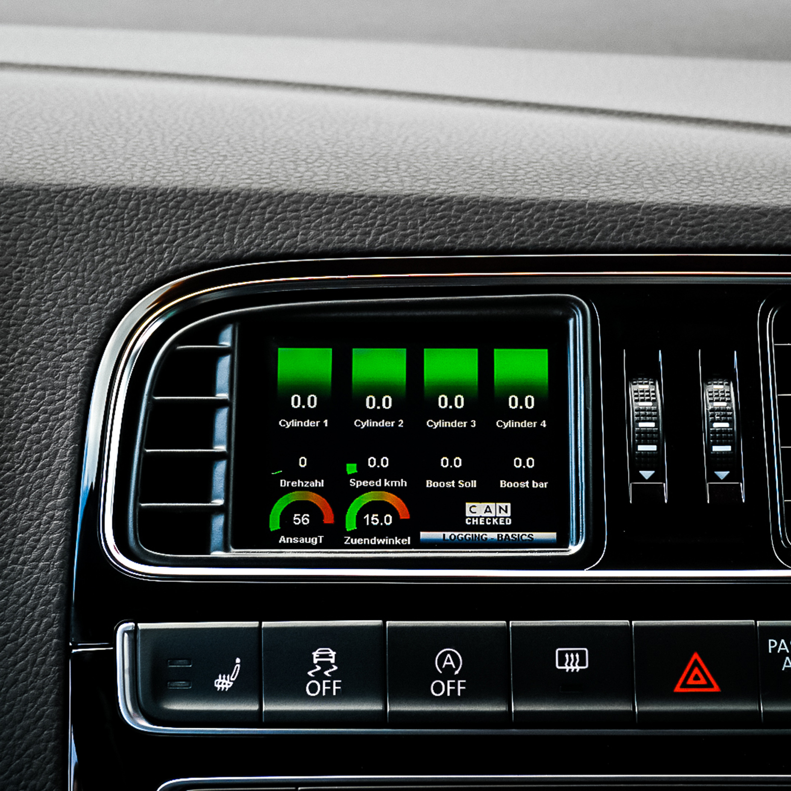 CANchecked MFD32 Gen2 – VW Polo MK5 6R / 6C (LHD) Dedykowany wyświetlacz danych CAN Bus CANchecked MFD32 Gen2 to zaawansowany, dedykowany wyświetlacz CAN Bus zaprojektowany specjalnie dla VW Polo MK5 w wersjach 6R oraz 6C. Urządzenie jest perfekcyjnie zintegrowane z kratką nawiewu, dzięki czemu wygląda jak element fabryczny i nie ogranicza przepływu powietrza. Wszystkie kluczowe dane pojazdu są zawsze czytelne i dostępne w polu widzenia kierowcy. MFD32 Gen2 zamienia standardowy nawiew w inteligentny wyświetlacz parametrów pojazdu. Konstrukcja została zaprojektowana tak, aby montaż był możliwy do wykonania samodzielnie. Dla większości pojazdów dostępne są ilustrowane instrukcje instalacji, dzięki czemu nie jest wymagana wizyta w warsztacie. Kluczowe funkcje Perfekcyjna integracja – dedykowana ramka umożliwia swobodny przepływ powietrza CAN Bus – odczyt zaawansowanych danych pojazdu na poziomie fabrycznych narzędzi diagnostycznych Wskazanie biegu – bezpośrednio z CAN Bus lub obliczane na podstawie prędkości i obrotów silnika Ekran dotykowy – intuicyjna obsługa za pomocą gestów przesuwania Personalizacja – tworzenie własnych stron, grafik oraz animacji startowych Dodatkowe wejścia – do 4 wejść analogowych oraz bezpośrednie podłączenie czujnika etanolu CAN Switching – możliwość użycia wyświetlacza jako klawiatury CAN i wysyłania własnych komunikatów Konfigurowalne alarmy – np. wyraźne ostrzeżenie przy temperaturze spalin powyżej 900°C Rejestracja danych (Logging) – zapis danych na wewnętrznej karcie SD Performance Meter – pomiar 0–100 km/h, 100–200 km/h oraz 0–200 km/h bez dodatkowego sprzętu DTC* – odczyt i kasowanie błędów ECU silnika, skrzyni biegów, ABS oraz napędu AWD Automatyczne przyciemnianie* – synchronizacja jasności wyświetlacza z podświetleniem zegarów Widoki i konfiguracja Fabryczne strony przykładowe Możliwość tworzenia własnych stron (do 10) Do 64 widgetów na jednej stronie 20 typów widgetów (wartości czujników, wskaźniki analogowe, wykresy YT, paski prędkości, wskaźniki okrągłe oraz pionowe/poziome) Dowolna zmiana rozmiaru i położenia metodą „przeciągnij i upuść” Pełna regulacja kolorystyki widgetów Oprogramowanie DSS (Display Setup Software) CANchecked DSS umożliwia pełną konfigurację wyświetlacza. Wbudowany podgląd logów pozwala na pobieranie i analizę zapisanych danych, a zintegrowany CAN Logger umożliwia rejestrację komunikacji magistrali CAN. Sercem oprogramowania jest edytor TRI, który pozwala: edytować nazwy czujników ustawiać wartości minimalne i maksymalne definiować progi alarmowe konfigurować czujniki CAN Bus oraz czujniki analogowe Obsługiwane dane Częste pytanie klientów brzmi: Jakie dane mogę odczytać z ECU? Odpowiedź jest prosta: wszystkie dostępne. CANchecked przeanalizował strukturę danych większości silników, oferując bardzo szczegółowe informacje. Wyświetlacz obsługuje zapytania CAN Bus (UDS, TP2 oraz protokoły producentów). Przykładowe obsługiwane wartości: Temperatury: temperatura spalin, cieczy chłodzącej, oleju, powietrza dolotowego, otoczenia, paliwa, temperatura DSG Ciśnienia: ciśnienie doładowania, atmosferyczne, ciśnienie paliwa przed pompą, ciśnienie listwy paliwowej (rzeczywiste / zadane) Lambda / mieszanka: wartość lambda, czas wtrysku, korekty krótkoterminowe i długoterminowe Pozostałe: obroty silnika, masa powietrza, prędkość pojazdu, kąt przepustnicy, całkowity kąt zapłonu, korekty zapłonu na cylinder, sterowanie N75 w %, napięcie zacisku 30, moment obrotowy, bieg, wartości specyficzne dla silników Diesla Brakujące wartości mogą zostać dodane w późniejszym czasie. Zestaw zawiera W każdej dostawie: Wyświetlacz MFD32 Gen2 zintegrowany z kratką nawiewu (LHD) Dedykowaną wiązkę połączeniową Instrukcję Quickstart Kabel USB Kartę SD (zainstalowaną w wyświetlaczu) Adapter karty SD Folię antyrefleksyjną Podłączanie czujników i rozbudowa 4 wejścia analogowe (obsługa sygnałów 0–5 V oraz czujników NTC) Czujniki CANchecked zapisane fabrycznie w plikach TRI/TRX – wystarczy je podłączyć: AIN1: czujnik temperatury NTC01 AIN2: konwerter termoelektryczny typu K – TCC01 AIN3: czujnik ciśnienia 0–10 bar – FLP01 AIN4: czujnik doładowania 0–5,5 bar absolutne – BST10 Możliwość użycia gotowej wiązki AIN Dodatkowo możliwe jest podłączenie zewnętrznego shift light z 8 diodami LED, którego kolory i progi obrotów ustawia się bezpośrednio na wyświetlaczu. Czujnik etanolu podłączany jest bezpośrednio do wyświetlacza. Wymagany jest rezystor pull-up 10 kΩ pomiędzy 5 V a sygnałem. Umożliwia to wyświetlanie i logowanie zawartości etanolu oraz jego temperatury. Funkcje zaawansowane Math-Channels – obliczenia pomiędzy wartościami czujników User-Table – tworzenie własnych kanałów pomiarowych przy użyciu map 2D i 3D Akcesoria opcjonalne CC24000 SLM08 – zewnętrzny moduł sygnalizacji LED CC22780 ANC04 – 4-kanałowa wiązka AIN CC22100 CBD08 – 8-kanałowy hub dystrybucji CAN CC22902 NTC01 – czujnik temperatury cieczy 1/8" NPT CC22903 TCC01 – konwerter typu K 0–1250°C CC22901 FLP01 – czujnik ciśnienia 0–10 bar (145 psi) M10×1 CC22900 BST10 – czujnik ciśnienia 6,5 bar względne (95 psi) * funkcje zależne od protokołu
