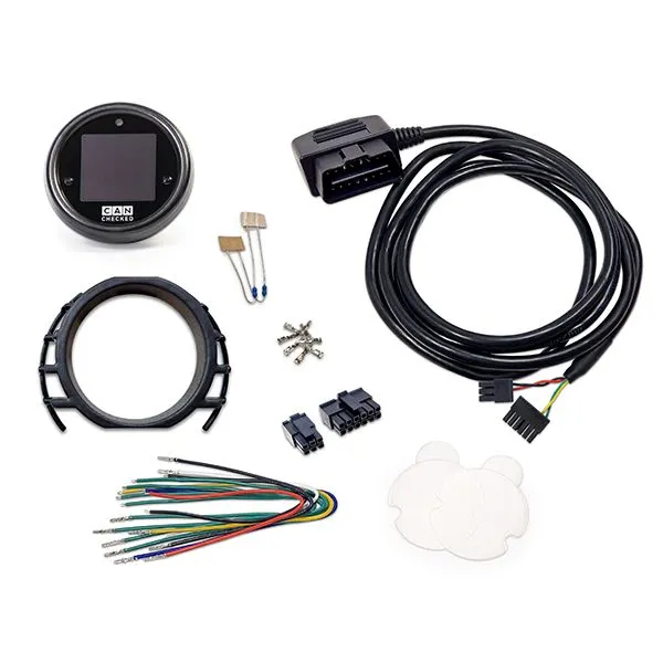 With this vehicle-specific CANchecked MFD15 Gen2 data display for your Seat Leon 1P you always have all relevant values in view The MFD15 Gen2 is equipped with an OLED screen, which offers best readability even in direct sunlight. This kit is supplied with a vehicle-specific bezel and a connection kit. It is operated using the two push buttons on the faceplate. You can also connect our optional rotary knob. Key Features Compact design: 52 mm in diameter and only 12.5 mm deep Faceplate-mounted LED: The LED on the front of the display can be used as a shift light and/or as a warning LED Can Bus: Support of Can Bus ECUs, own Can streams and from 2008 on OBD2 and deep values for VAG-cars WiFi: connect to your smartphone or PC and configure it using our Web App Additional inputs: connect up to 6 analog sensors to the inputs or connect an ethanol sensor* directly to the display Preset Alarms: predefined alarms can be easily activated and customized. For example, get a big alert when the exhaust gas temperature is above 900 degrees. Customization: Use your own startup logo and color scheme to make it your MFD15 Gen2 Online logging*: Log your data with your smartphone or PC and save the log to your device for later analysis Flex Fuel*: View ethanol content and temperature on your display Can Switching*: Switch can switches using the buttons on your display and forward the readings from your analog inputs to the can bus Different views Choose up to eight pages of different views and customize your display to best suit you and your vehicle: Analog pointer Double value Gear indicator 4-fold values 6-fold values Bar + double display Round display Bar graph (double across) Performance Meter Bar chart (1-6-fold upright) Single value Configuration using Online Display Setup Software - oDSS Brand new with our MFD15 Gen2 is access to the device via WiFi. So you can set up the MFD15 Gen2 via smartphone or PC. With the oDSS you can set your display completely, log values (license required), upload your own startup image and also update the display. Supported values A popular customer question is: Which values can I request from my ECU. The answer: ALL - your new MFD15 Gen2 is compatible with ISO 11898-2 and SAE J2284. The ECU manufacturers themselves determine which values are sent via the CAN bus interface. Here the documentation is important - possibly even in the form of a DBC file that can be imported via our DSS. Of course, as a customer, you can access our extensive list of already implemented ECUs. In total, depending on the manufacturer, up to 64 sensors can be queried. Of course, OBD2 queries via Can Bus (11bit/29bit) are also implemented. Vehicle specific protocols like UDS or TP2 are also available. Included by default are:- OBD2 - 11 and 29bit- Ecumaster - Classic and Black- VAG PQ34- Haltech v2- LinkECU- MaxxECU- Motec M1- Emtron- Megasquirt 2 and 3 If the desired ECU is not listed, you can download or request the appropriate TRI/TRX from our database. For all VAG-cars from year of manufacture 2008 (in individual cases also older) we offer in-depth data queries by protocol. Values like oil temperature, boost pressure, transmission temperature, cylinder selective ignition angle return, high/low pressure, wastegate actuation and much more can be queried and displayed. Integrated LED The internal LED can be used as a shift light as well as a warning LED. As a shift light you can assign up to 8 different colors and speed limits as well as the speed at which the shift light starts to flash. When configuring as a warning LED, you can assign a minimum and maximum value for each sensor. If the sensor is above the maximum value or below the minimum value, the LED flashes in the previously configured colour. The shift light is deactivated during the warning period. Scope of delivery and extensions Included with every delivery: MFD15 Gen2 Datadisplay Vehicle-specific bezel for LHD/RHD vehicles Vehicle-specific connection cable Quickstart Guide Connector B (6-way Molex) Connector C (12-way Molex) Different coloured pre-assembled connection cables (length: 20 cm, intended use: power supply, Can Bus, analogue inputs, 5V, sensor ground) pins to crimp by yourself two 1K resistors (as pullup of NTC sensors) Any sensors can be connected via the six analog inputs - we support linear 0-5V as well as NTC sensors. The characteristic curves of our in-house CANchecked sensors are stored in the display by factory default and work plug and play: AIN1: Temperature sensor (NTC01) AIN2: Transducer for exhaust gas temperature probe type K (TCC01) AIN3: Pressure sensor 0-10 bar (FLP01) AIN4: boost pressure sensor 0-5,5 Bar absolute (BST01) AIN5: not preconfigured AIN6: not preconfigured For the connection you can use our pre-assembled 4-way AIN harness. If you have the appropriate license* you can additionally connect an ethanol sensor directly to the display via a separate pin. Optional accessories CC22501 ETK01 - external rotary knob with PnP 50 cm connection cable CC22100 CBD08 - eight-way Can Distribution Hub CC22780 ANC04 - four-way AIN-harness CC22902 NTC01 - temperature sensor for liquids 1/8 inch NPT CC22903 TCC01 - type K transducer 0-1250°C CC22901 FLP01 - Pressure sensor 0-10 Bar (145psi) M10x1 CC22900 BST01 - Pressure sensor 0-5,5 Bar absolute (80psi) *Additional licenses Live Logging of the MFD15 Gen2 With the additional license "Live Logging", your display can log the data of the sensors into the oDSS. Then you can download the log as a file to your smartphone or PC. All sensors are logged in the log (ATTENTION: for OBD and UDS only the currently displayed ones!). Select the sensors you want to display graphically. Flex Fuel Ethanol Sensor directly on the MFD15 Gen2 With the additional license for the ethanol sensor, you connect the sensor directly to the display. You need a pullup resistor (10K) between 5V and the signal.Now you can see the ethanol content as well as the fuel temperature and also log it. Can
