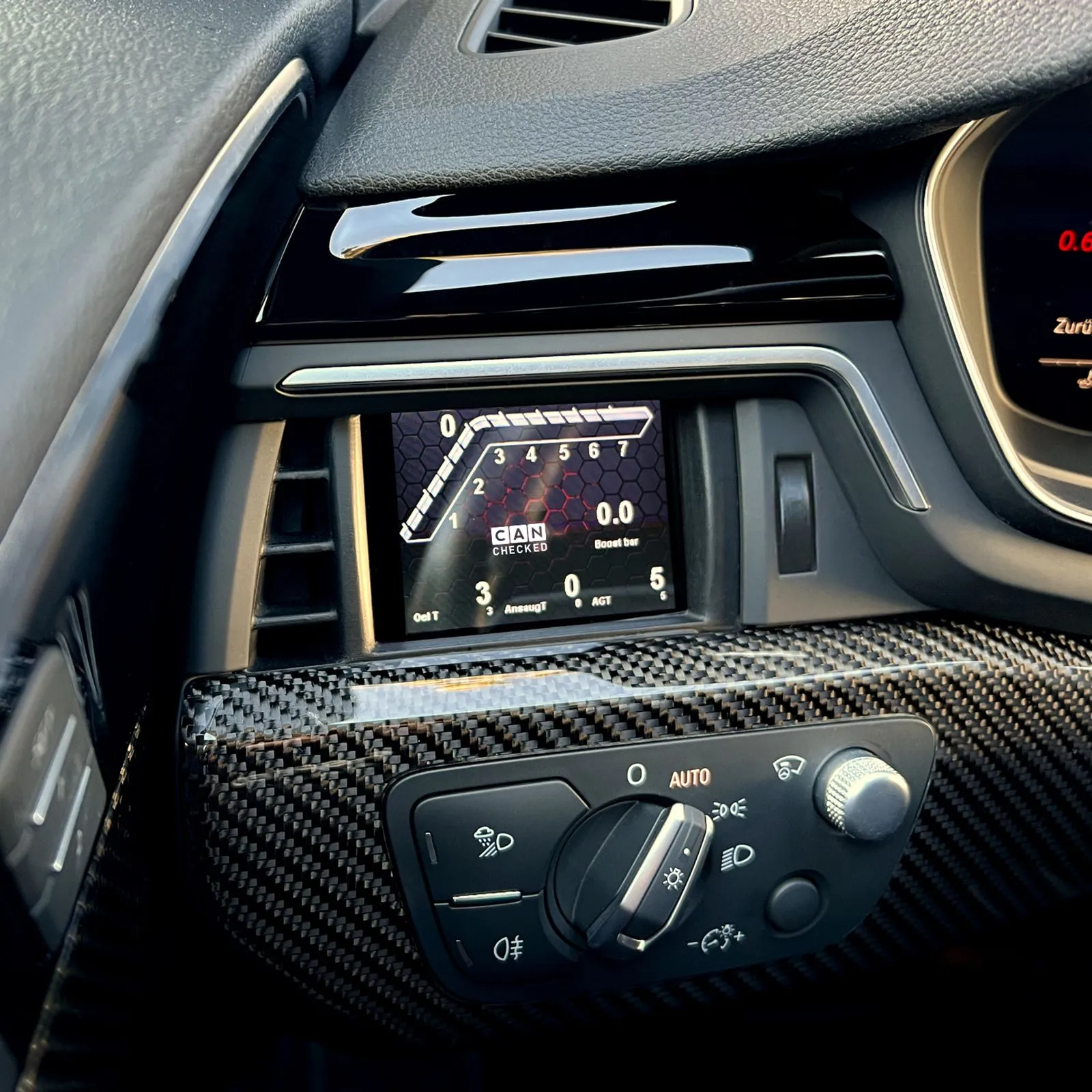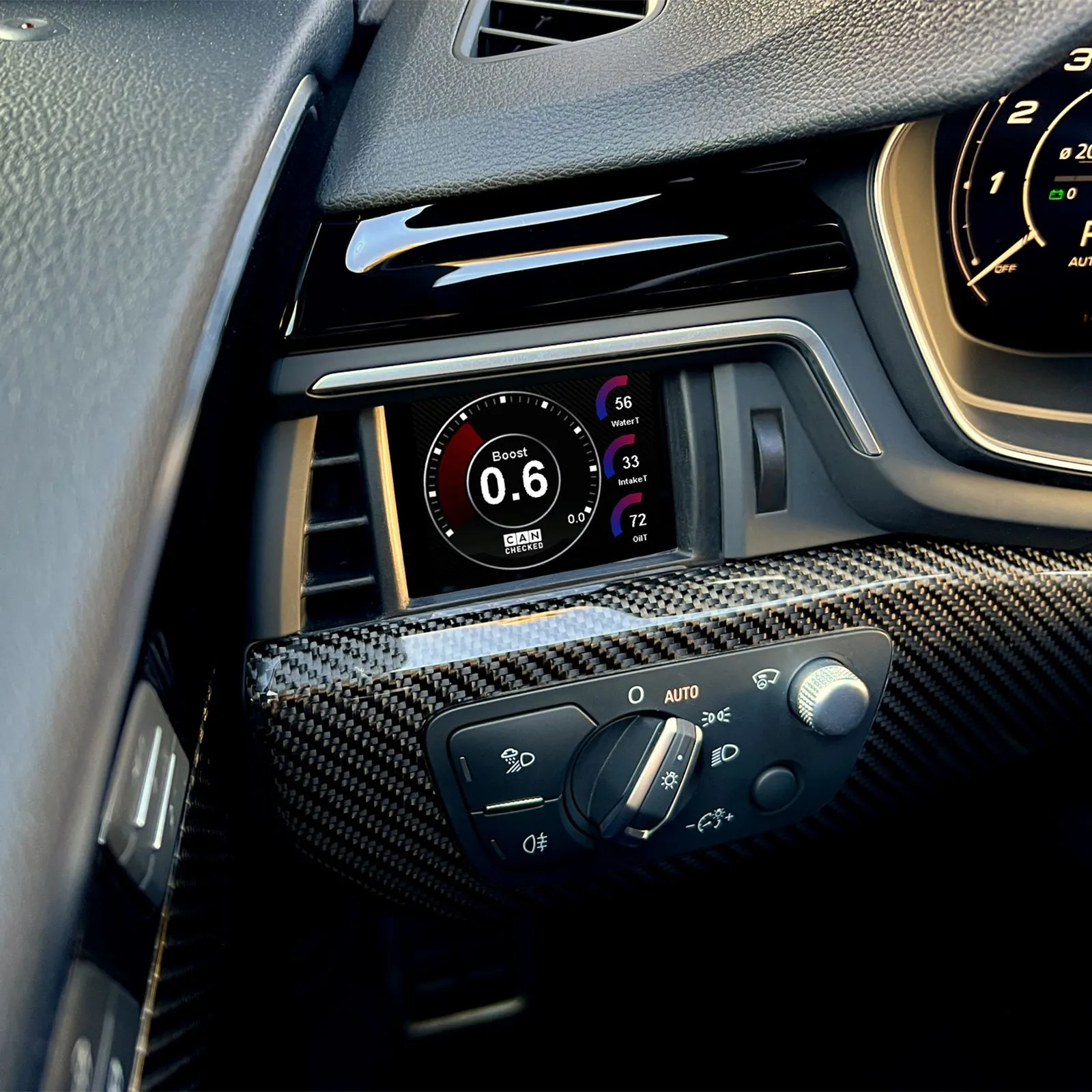 Pojazdowy, dedykowany CANchecked Multi Function Display MFD28 Gen2 dla Audi A4/A5 B9 (F4/F5) perfekcyjnie integruje się z kratką nawiewu i zastępuje ją inteligentnym wyświetlaczem. Dzięki temu wszystkie kluczowe dane są zawsze w zasięgu wzroku, bez konieczności montażu dodatkowych zegarów czy ingerencji w deskę rozdzielczą. Najważniejsze cechy Perfekcyjna integracja: Dedykowana ramka dla A4/A5 B9 (F4/F5) zachowuje przepływ powietrza wokół wyświetlacza. CAN Bus: Odczyt zaawansowanych danych pojazdu – jak w fabrycznych testerach diagnostycznych (UDS, TP2, protokoły producenta). Wyświetlanie biegu: Bezpośrednio z CAN lub wyliczane na podstawie prędkości i obrotów silnika. Ekran dotykowy: Nawigacja po stronach za pomocą intuicyjnych gestów (swipe). Personalizacja: Możliwość tworzenia własnych stron, dodawania grafik, ikon i animacji startowych. Dodatkowe wejścia: Do 4 wejść analogowych oraz możliwość podłączenia czujnika etanolu bezpośrednio do wyświetlacza. CAN Switching: Użyj wyświetlacza jako klawiatury CAN i wysyłaj własne ramki do magistrali. Konfigurowalne alarmy: Prosta konfiguracja progów ostrzegawczych, np. duży komunikat przy EGT > 900°C. Logging: Rejestracja i zapis danych na wewnętrzną kartę SD do późniejszej analizy. Performance Meter: Pomiar 0–100, 100–200 i 0–200 km/h bez dodatkowego sprzętu. DTC*: Odczyt i kasowanie błędów ECU silnika, skrzyni biegów, ABS oraz napędu na cztery koła. Automatyczne przyciemnianie*: Automatyczne dopasowanie jasności wyświetlacza do podświetlenia zegarów. *funkcje zależne od protokołu pojazdu Widoki i widgety wyświetlacz dostarczany z gotowymi, przykładowymi stronami możliwość tworzenia do 10 własnych stron ponad 20 typów widgetów (wartość cyfrowa, wskaźnik analogowy, wykres YT, bargraf pionowy/poziomy, wskaźniki okrągłe, „speed bar” itd.) swobodne skalowanie i pozycjonowanie widgetów metodą „przeciągnij i upuść” pełna konfiguracja kolorów do 64 widgetów na stronę Display Setup Software – DSS pełna konfiguracja wyświetlacza z poziomu komputera wbudowany log viewer – pobieranie i analiza logów zintegrowany Can-Logger edytor TRI – konfiguracja czujników CAN i analogowych, zmiana nazw, przypisanie progów min/max dla alarmów Obsługiwane wartości (przykładowe) MFD28 Gen2 może odczytać wszystkie wartości udostępnione przez ECU. Dla większości jednostek dostępne są gotowe pliki TRI/TRX z predefiniowanymi sensorami. Temperatury: temperatura spalin (EGT) temperatura cieczy chłodzącej temperatura oleju temperatura powietrza dolotowego temperatura zewnętrzna temperatura paliwa temperatura skrzyni (np. DSG/automat) Ciśnienia: ciśnienie doładowania ciśnienie atmosferyczne ciśnienie paliwa (pre-feed, rail actual/target) Lambda / mieszanka: wartość lambda czas wtrysku krótkoterminowe i długoterminowe korekty mieszanki Inne: obroty silnika (RPM) prędkość pojazdu masa zasysanego powietrza kąt otwarcia przepustnicy kąt zapłonu całkowity i korekty na cylindry wysterowanie N75 w % napięcie terminala 30 moment obrotowy aktualny bieg wartości specyficzne dla diesla Brakujące wartości można dodać później poprzez modyfikację konfiguracji. Zakres dostawy MFD28 Gen2 zintegrowany w wkładzie nawiewu dla pojazdów LHD (A4/A5 B9, S/RS) dedykowana wiązka połączeniowa dla Audi A4/A5 B9 (F4/F5) Quickstart Guide kabel USB karta SD (wstępnie zainstalowana w urządzeniu) adapter do karty SD folia ochronna wyświetlacza (antyrefleksyjna) Połączenia i rozbudowa Cztery wejścia analogowe obsługują czujniki liniowe 0–5 V oraz NTC: AIN1: czujnik temperatury NTC01 AIN2: przetwornik typu K TCC01 (EGT) AIN3: czujnik ciśnienia FLP01 (0–10 bar) AIN4: czujnik ciśnienia doładowania BST10 (0–5,5 bar absolute) Dodatkowo: możliwość podłączenia zewnętrznego shiftlightu z ośmioma diodami LED – kolory i progi obrotów konfigurowane bezpośrednio w menu wyświetlacza możliwość podłączenia czujnika etanolu – wymagany rezystor 10K między 5 V a sygnałem, następnie zawartość etanolu i temperatura są widoczne oraz logowane na wyświetlaczu Funkcje zaawansowane: Math-Channels – obliczanie nowych kanałów na podstawie istniejących czujników User-Table – tworzenie dodatkowych „wirtualnych” sensorów w oparciu o mapy 2D lub 3D Opcjonalne akcesoria CC24000 SLM08 – zewnętrzny moduł shiftlight CC22780 ANC04 – czterokanałowa wiązka AIN CC22100 CBD08 – ośmiodrożny rozdzielacz CAN Bus CC22902 NTC01 – czujnik temperatury cieczy/oleju 1/8" NPT CC22903 TCC01 – konwerter typu K 0–1250°C CC22901 FLP01 – czujnik ciśnienia 0–10 bar (145 psi) M10×1 CC22900 BST10 – czujnik ciśnienia doładowania 6,5 bar relativ (95 psi) *nie wszystkie funkcje mogą być dostępne w każdym protokole pojazdu