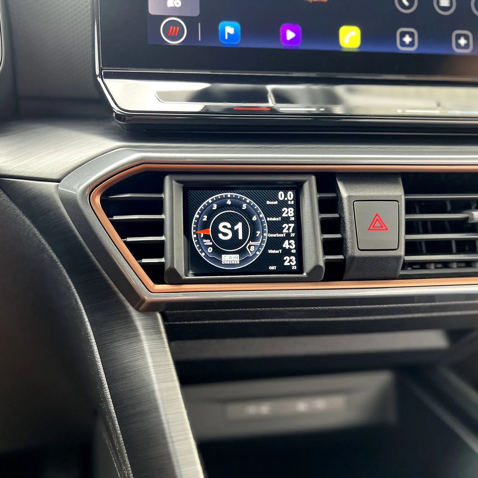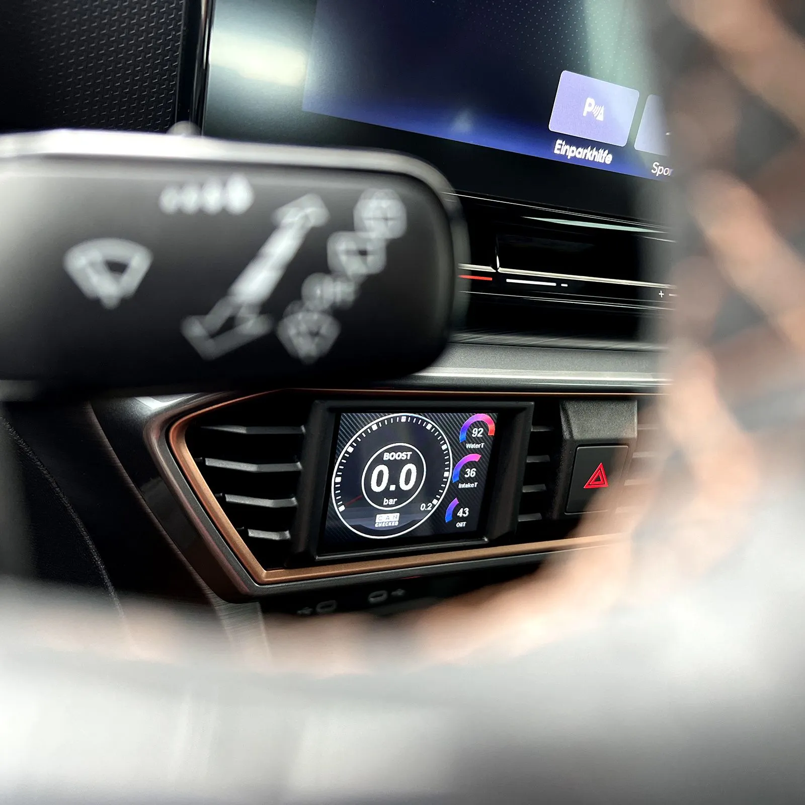 MFD28 Seat/Cupra Formentor LHD Display - Twój kokpit przyszłości Z dumą przedstawiamy zaawansowany wyświetlacz CANchecked MFD28 dedykowany dla modeli Seat/Cupra Formentor LHD. Ten innowacyjny wyświetlacz zapewnia dostęp do wszystkich istotnych danych pojazdu. Wyświetlacz odczytuje dane bezpośrednio przez protokół Can-Bus i prezentuje je na naszym niezawodnym wyświetlaczu MFD28. Wyświetlacz MFD28 Seat/Cupra Formentor LHD został zaprojektowany tak, aby płynnie zintegrować się z kokpitem pojazdu i posiada ramkę, która doskonale uzupełnia oryginalny projekt. Kluczowe cechy: Doskonała integracja z wnętrzem pojazdu Odczyt maksymalnie 128 czujników 10 indywidualnie konfigurowalnych widoków za pomocą oprogramowania DSS - Display Setup Software Wstępnie skonfigurowane widoki umożliwiające natychmiastowe użytkowanie Łatwa instalacja plug-and-play - wystarczy podłączyć i można rozpocząć użytkowanie 4 dodatkowe wejścia analogowe do pomiaru temperatury spalin, ciśnienia oleju i innych parametrów Doskonała czytelność dzięki opcjonalnej folii antyodblaskowej Przełączanie trybów wyświetlania za pomocą oryginalnego przełącznika tempomatu Dodatkowe funkcje: Pomiary wydajności: Zmierz swoje czasy przyspieszenia za pomocą naszego widżetu wydajności - 0-100, 100-200, 0-200 Rejestrowanie danych: Rejestruj wszystkie dane na wewnętrznej karcie SD - na żądanie lub na stałe. Zapisywane są wszystkie dane z ostatniej jazdy Wstępnie ustawione alerty: Aktywuj i dostosuj wstępnie ustawione komunikaty ostrzegawcze, na przykład, gdy temperatura spalin przekroczy 900 stopni. 4 dodatkowe wejścia analogowe: Podłącz dodatkowe czujniki temperatury i/lub ciśnienia, aby uzyskać więcej opcji monitorowania, np takich jak temperatura spalin. Czujnik zawartości etanolu można podłączyć do jednego z wejść cyfrowych. Odczyt i usuwanie błędów: Odczytaj błędy z jednostki sterującej silnika i w razie chęci z łatwością je usuń. Personalizacja: Zaprojektuj własne strony, dodaj własne zdjęcia lub uruchom animację Wyświetlacz bezproblemowo integruje się zarówno z pojazdami z kierownicą po lewej, jak i po prawej stronie. Dostęp do wszystkich danych z jednostki sterującej silnika jest możliwy dzięki wstępnie skonfigurowanemu plikowi TRI, który jest dostarczany w standardzie. Oto wszystkie zdefiniowane czujniki, z których można odczytywać dane: Temperatura: Temperatura układu wydechowego, temperatura płynu chłodzącego, temperatura oleju, temperatura układu dolotowego, temperatura zewnętrzna, temperatura paliwa, temperatura DSG. Ciśnienie: Ciśnienie doładowania, ciśnienie otoczenia, ciśnienie paliwa przed pompą zasilającą, ciśnienie listwy rzeczywiste / docelowe. Lambda/mieszanka: Wartość lambda, czas wtrysku, krótkoterminowa regulacja lambda, długoterminowa regulacja lambda Inne: Obroty, masa powietrza, prędkość pojazdu, kąt przepustnicy, całkowity kąt zapłonu, cofnięcie kąta zapłonu na cylinder, moment obrotowy, Jeśli brakuje określonych wartości, można je łatwo dodać w zależności od obsługiwanych czujników w Twoim silniku. Należy pamiętać, że nie wszystkie silniki udostępniają wyżej opisane dane. Kompatybilność z modelami MFD28 Seat/Cupra Formentor LHD: Ramka wyświetlacza jest odpowiednia dla wszystkich modeli Seat/Cupra Formentor LHD, w tym Leon KL. Dostępna jest również wersja z kierownicą po prawej stronie (RHD). W zestawie znajduje się: Wyświetlacz danych MFD28 Gen2 zintegrowany z kratką wentylacyjną Przewód przyłączeniowy Skrócona instrukcja obsługi Kabel USB do transmisji danych Karta SD (fabrycznie zainstalowana w wyświetlaczu) Adapter karty SD Folia wyświetlacza (zapobiegająca odbiciom) Połączenie i rozszerzenie: Za pośrednictwem czterech wejść analogowych można podłączyć dowolne czujniki - zarówno liniowe czujniki 0-5 V, jak i czujniki NTC. Czujniki CANchecked Dsiplay są domyślnie w plikach TRI/TRX i wymagają jedynie podłączenia: AIN1: Czujnik temperatury AIN2: Przetwornik do czujnika temperatury spalin typu K AIN3: Czujnik ciśnienia 0-10 bar AIN4: Czujnik ciśnienia doładowania 0-5,5 bara bezwzględnego Oprócz czujników analogowych można również podłączyć zewnętrzne światło zmiany biegów (shift light) z 8 diodami LED. Może migać w różnych kolorach, a ograniczenia i kolory można skonfigurować bezpośrednio na wyświetlaczu. Mozliwe jest również podłączenie czujnika etanolu bezpośrednio do wyświetlacza. Potrzeba użyć do tego rezystora (10 K) między 5 V a sygnałem. Następnie możesz przeglądać i rejestrować zawartość etanolu i temperaturę paliwa bezpośrednio na wyświetlaczu. Akcesoria opcjonalne: CC24000 SLM08 - wyświetlacz zmiany biegów CC22100 CBD08 - blok dystrybucji Can z 8 wejściami CC22902 NTC01 - czujnik temperatury cieczy 1/8" NPT CC22903 TCC01 - przetwornik sygnału z sondy EGT typu K 0-1250°C CC22901 FLP01 - czunik ciśnienia 0-10 Bar (145psi) M10x1 CC22900 BST01 - czunik ciśnienia 0-5,5 Bar absolute (80psi) Instrukcja montażu: Dostarczamy ilustrowaną instrukcję montażu, aby zapewnić płynny proces instalacji.Uwolnij pełny potencjał swojego samochodu dzięki zaawansowanemu wyświetlaczowi. Jeśli masz jakiekolwiek pytania lub potrzebujesz dodatkowych informacji, jesteśmy do Twojej dyspozycji.