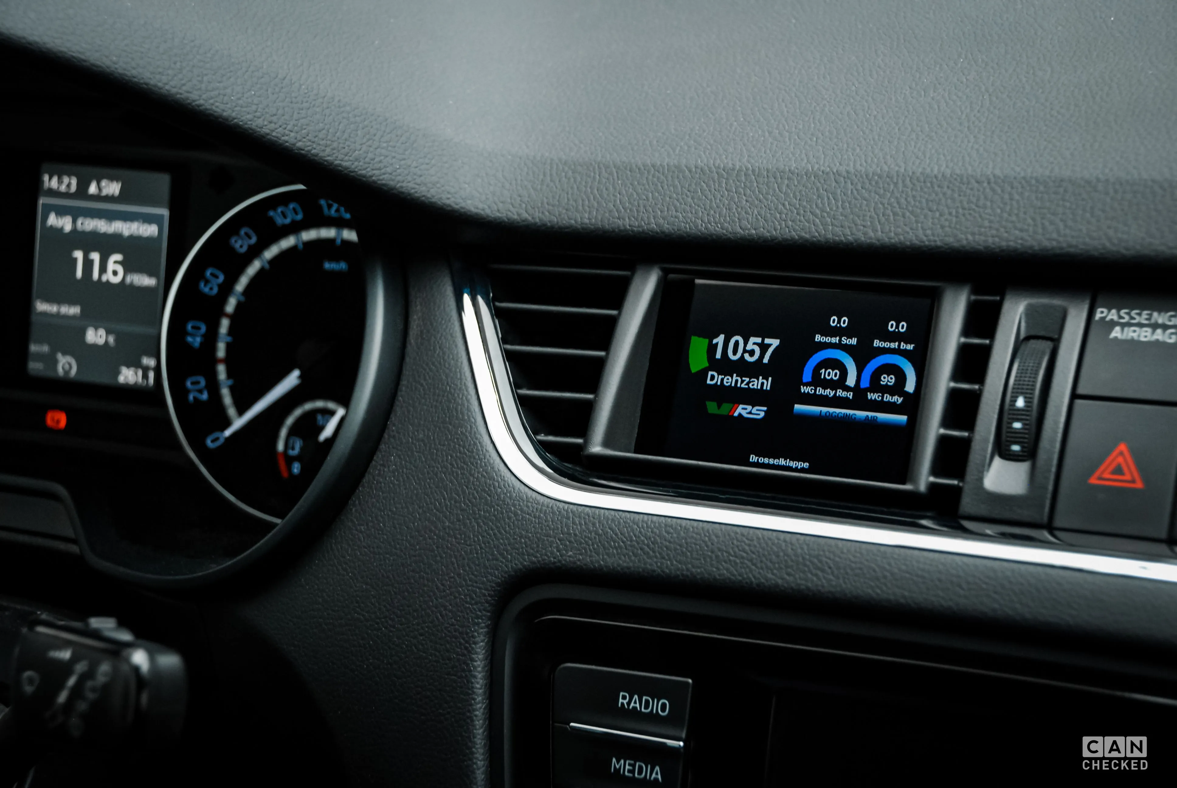 Wyświetlacz MFD32 SKODA Octavia 5E GEN2 - uwolnij moc danych Z dumą prezentujemy Zaawansowany wyświetlacz CANchecked MFD32 dedykowany do modeli SKODA Octavia 5E GEN2. Ten najnowocześniejszy wyświetlacz zapewnia dostęp do wszystkich danych z jednostki sterującej silnika. Nasz wyświetlacz wysyła zapytania do czujników bezpośrednio za pośrednictwem protokołu Can Bus i prezentuje informacje na naszym niezawodnym wyświetlaczu MFD32. Wyświetlacz MFD32 SKODA Octavia 5E GEN2 płynnie integruje się z wnętrzem pojazdu dzięki niestandardowej ramce, naśladującej oryginalną część. Dopracowaliśmy specyficzny dla producenta protokół Can Bus, aby osiągnąć maksymalną szybkość zapytań. Kluczowe cechy: Doskonała integracja z wnętrzem pojazdu Odczyt maksymalnie 128 czujników 10 indywidualnie konfigurowalnych widoków za pomocą oprogramowania DSS - Display Setup Software Wstępnie skonfigurowane widoki umożliwiające natychmiastowe użytkowanie Łatwa instalacja plug-and-play - wystarczy podłączyć i można rozpocząć użytkowanie 4 dodatkowe wejścia analogowe do pomiaru temperatury spalin, ciśnienia oleju i innych parametrów Doskonała czytelność dzięki opcjonalnej folii antyodblaskowej Dodatkowe funkcje: Pomiary wydajności: Zmierz swoje czasy przyspieszenia za pomocą naszego widżetu wydajności - 0-100, 100-200, 0-200 Rejestrowanie danych: Rejestruj wszystkie dane na wewnętrznej karcie SD - na żądanie lub na stałe. Zapisywane są wszystkie dane z ostatniej jazdy Wstępnie ustawione alerty: Aktywuj i dostosuj wstępnie ustawione komunikaty ostrzegawcze, na przykład, gdy temperatura spalin przekroczy 900 stopni. 4 dodatkowe wejścia analogowe: Podłącz dodatkowe czujniki temperatury i/lub ciśnienia, aby uzyskać więcej opcji monitorowania, np takich jak temperatura spalin. Czujnik zawartości etanolu można podłączyć do jednego z wejść cyfrowych. Odczyt i usuwanie błędów: Odczytaj błędy z jednostki sterującej silnika i w razie chęci z łatwością je usuń. Personalizacja: Zaprojektuj własne strony, dodaj własne zdjęcia lub uruchom animację Wyświetlacz bezproblemowo integruje się zarówno z pojazdami z kierownicą po lewej, jak i po prawej stronie. Dostęp do wszystkich danych z jednostki sterującej silnika jest możliwy dzięki wstępnie skonfigurowanemu plikowi TRI, który jest dostarczany w standardzie. Oto wszystkie zdefiniowane czujniki, z których można odczytywać dane: Temperatura: Temperatura układu wydechowego, temperatura płynu chłodzącego, temperatura oleju, temperatura układu dolotowego, temperatura zewnętrzna, temperatura paliwa, temperatura DSG. Ciśnienie: Ciśnienie doładowania, ciśnienie otoczenia, ciśnienie paliwa przed pompą zasilającą, ciśnienie listwy rzeczywiste / docelowe. Lambda/mieszanka: Wartość lambda, czas wtrysku, krótkoterminowa regulacja lambda, długoterminowa regulacja lambda Inne: Obroty, masa powietrza, prędkość pojazdu, kąt przepustnicy, całkowity kąt zapłonu, cofnięcie kąta zapłonu na cylinder, moment obrotowy, Jeśli brakuje określonych wartości, można je łatwo dodać w zależności od obsługiwanych czujników w Twoim silniku. Należy pamiętać, że nie wszystkie silniki udostępniają wyżej opisane dane. Dla jakich silników i modeli pasuje wyświetlacz? Ramka wyświetlacza pasuje do wszystkich modeli SKODA Octavia 5E z kierownicą po lewej stronie. W zestawie znajduje się: Included with every delivery Wyświetlacz danych MFD32 Gen2 zintegrowany z kratką wentylacyjną Przewód przyłączeniowy Skrócona instrukcja obsługi Kabel USB do transmisji danych Karta SD (fabrycznie zainstalowana w wyświetlaczu) Adapter karty SD Folia wyświetlacza (zapobiegająca odbiciom) Połączenie i rozszerzenie: Za pośrednictwem czterech wejść analogowych można podłączyć dowolne czujniki - zarówno liniowe czujniki 0-5 V, jak i czujniki NTC. Czujniki CANchecked Dsiplay są domyślnie w plikach TRI/TRX i wymagają jedynie podłączenia: AIN1: Czujnik temperatury AIN2: Przetwornik do czujnika temperatury spalin typu K AIN3: Czujnik ciśnienia 0-10 bar AIN4: Czujnik ciśnienia doładowania 0-5,5 bara bezwzględnego Oprócz czujników analogowych można również podłączyć zewnętrzne światło zmiany biegów (shift light) z 8 diodami LED. Może migać w różnych kolorach, a ograniczenia i kolory można skonfigurować bezpośrednio na wyświetlaczu. Mozliwe jest również podłączenie czujnika etanolu bezpośrednio do wyświetlacza. Potrzeba użyć do tego rezystora (10 K) między 5 V a sygnałem. Następnie możesz przeglądać i rejestrować zawartość etanolu i temperaturę paliwa bezpośrednio na wyświetlaczu. Akcesoria opcjonalne: CC24000 SLM08 - wyświetlacz zmiany biegów CC22100 CBD08 - blok dystrybucji Can z 8 wejściami CC22902 NTC01 - czujnik temperatury cieczy 1/8" NPT CC22903 TCC01 - przetwornik sygnału z sondy EGT typu K 0-1250°C CC22901 FLP01 - czunik ciśnienia 0-10 Bar (145psi) M10x1 CC22900 BST01 - czunik ciśnienia 0-5,5 Bar absolute (80psi) Instrukcja montażu: Dostarczamy ilustrowaną instrukcję montażu, aby zapewnić płynny proces instalacji.Uwolnij pełny potencjał swojego samochodu dzięki zaawansowanemu wyświetlaczowi. Jeśli masz jakiekolwiek pytania lub potrzebujesz dodatkowych informacji, jesteśmy do Twojej dyspozycji.