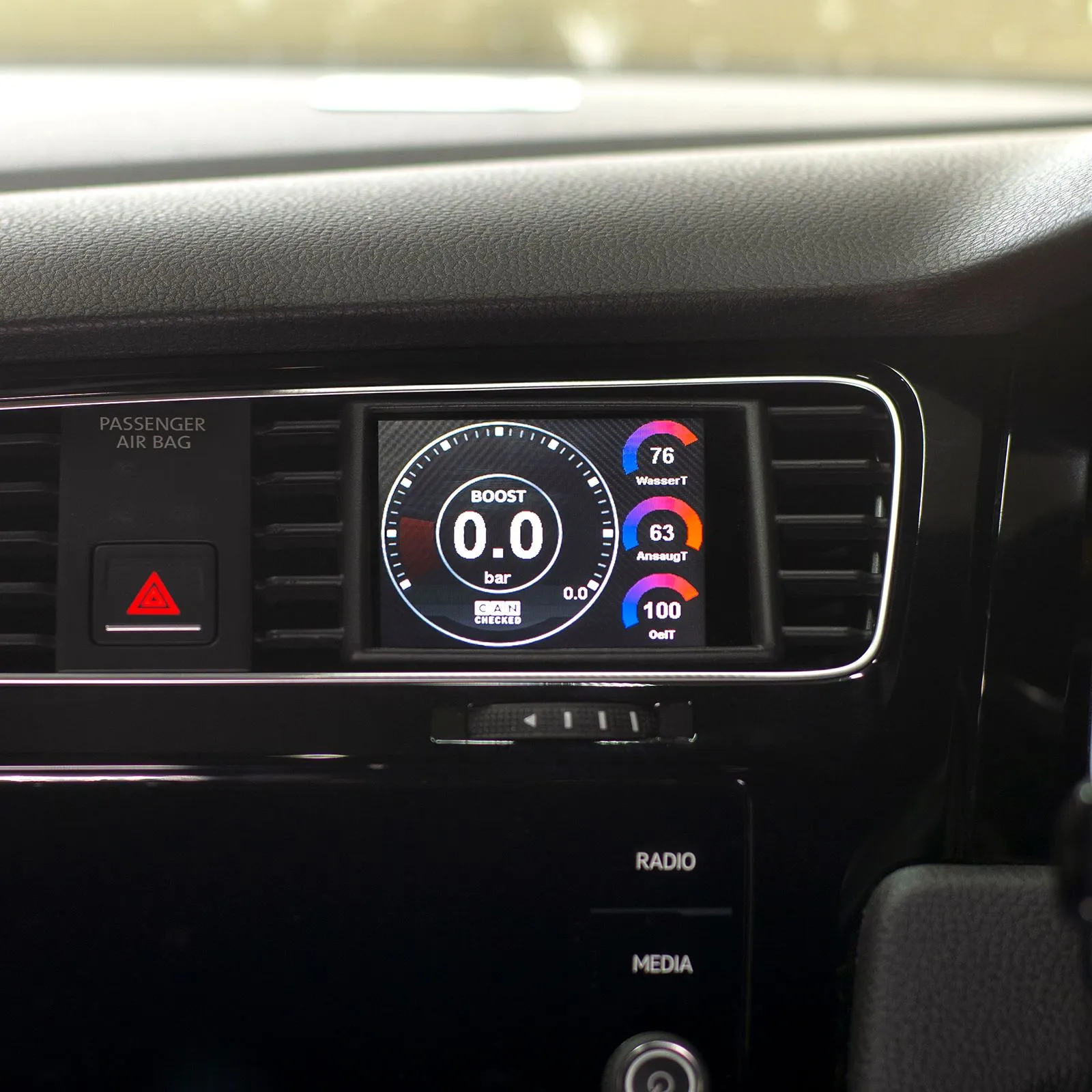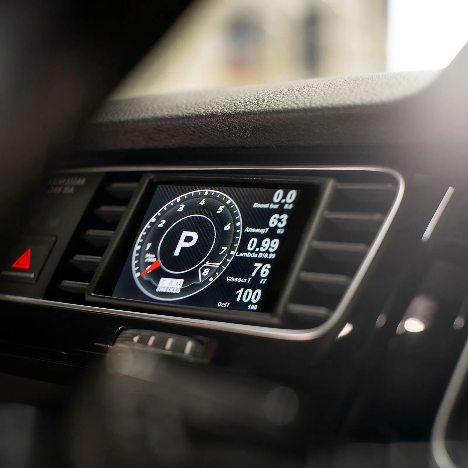 CANchecked Wielofunkcyjny Wyświetlacz MFD32 Gen2 do Volkswagen Golf MK7 2012–2019 RHD Pojazdowy, dedykowany CANchecked Multi Function Display MFD32 Gen2 do Volkswagen Golf MK7 (2012–2019, wersja z kierownicą po prawej stronie – RHD) to wyświetlacz idealnie zintegrowany z wnętrzem auta. Zastępuje seryjny nawiew inteligentnym ekranem, który zapewnia stały podgląd kluczowych parametrów pracy silnika i pojazdu. Dzięki przemyślanej konstrukcji oraz ilustrowanej instrukcji montażu urządzenie można zainstalować samodzielnie – bez konieczności wizyty w warsztacie. Najważniejsze cechy Perfekcyjna integracja: dedykowana ramka zachowuje przepływ powietrza przez nawiew mimo zabudowy wyświetlaczem. Can Bus: odczyt zaawansowanych danych pojazdu na poziomie fabrycznych narzędzi diagnostycznych. Wskazanie biegu: bezpośrednio z magistrali CAN lub na podstawie prędkości i obrotów silnika. Ekran dotykowy: nawigacja po stronach za pomocą intuicyjnych gestów. Personalizacja: możliwość tworzenia własnych stron, dodawania grafik i animacji startowych. Dodatkowe wejścia: do 4 wejść analogowych oraz możliwość bezpośredniego podłączenia czujnika etanolu. Can Switching: wykorzystanie wyświetlacza jako „klawiatury” wysyłającej własne ramki CAN do magistrali. Konfigurowalne alarmy: łatwe ustawienie progów ostrzegawczych, np. komunikat przy temperaturze spalin powyżej 900°C. Rejestrowanie danych: logowanie i zapis parametrów na wewnętrznej karcie SD. Performance Meter: pomiar czasów 0–100, 100–200 oraz 0–200 km/h bez dodatkowego osprzętu. DTC*: odczyt i kasowanie błędów sterownika silnika, skrzyni biegów, ABS oraz napędu 4x4. Automatyczne ściemnianie*: automatyczne dopasowanie jasności wyświetlacza do podświetlenia zestawu wskaźników. Różne widoki fabrycznie wgrane przykładowe strony, możliwość stworzenia do 10 własnych stron, 20 typów widgetów (np. wartość czujnika, wskaźnik analogowy, wykres, pasek prędkości, okrągły wskaźnik, pionowy/poziomy bargraf), skalowanie i swobodne rozmieszczanie widgetów metodą „przeciągnij i upuść”, pełna regulacja kolorów widgetów, do 64 widgetów na jednej stronie. Display Setup Software – DSS Z pomocą CANchecked DSS można w pełni dopasować działanie wyświetlacza do swojego auta: pobieranie i przegląd logów w wbudowanym log viewerze, zintegrowany CAN-Logger do zapisu ramek, edytor TRI do konfiguracji wszystkich czujników (zarówno z CAN, jak i wejść analogowych), ustawianie wartości minimalnych i maksymalnych dla alarmów, zmiana nazw czujników. Obsługiwane wartości Częste pytanie klientów: „Jakie wartości mogę odczytać z ECU?” Odpowiedź: wszystkie, które sterownik silnika udostępnia. Dla większości silników dane zostały zrewersowane (reverse engineering), dzięki czemu możliwy jest szczegółowy odczyt parametrów. Wyświetlacz obsługuje zapytania po CAN (UDS, TP2, protokoły producentów). Domyślnie urządzenie dostarczane jest z wgranymi plikami TRI/TRX, w których zdefiniowane są czujniki odczytywane w danym silniku. Pomiędzy jednostkami wartości mogą się różnić. Przykładowo: Temperatury: temperatura spalin, temperatura płynu chłodzącego, temperatura oleju, temperatura powietrza dolotowego, temperatura zewnętrzna, temperatura paliwa, temperatura DSG. Ciśnienia: ciśnienie doładowania, ciśnienie atmosferyczne, ciśnienie paliwa z pompy wstępnej, ciśnienie na listwie (wartość aktualna/docelowa). Lambda / mieszanka: wartość lambda, czas wtrysku, krótkoterminowe i długoterminowe korekty. Inne: obroty silnika, masa powietrza, prędkość pojazdu, kąt otwarcia przepustnicy, całkowity kąt wyprzedzenia zapłonu, korekta zapłonu na cylinder, wysterowanie N75 w %, napięcie na zacisku 30, moment obrotowy, aktualny bieg, wartości specyficzne dla silników wysokoprężnych. Brakujące wartości można dodać później. Zawartość zestawu W każdym zestawie znajdują się: MFD32 Gen2 – wyświetlacz danych zintegrowany z wkładką nawiewu dla pojazdów RHD, dedykowana wiązka pojazdowa, instrukcja szybkiego uruchomienia (Quickstart Guide), przewód USB, karta SD (wstępnie zainstalowana w wyświetlaczu), adapter karty SD, folia ochronna na ekran (ogranicza odblaski). Podłączenia i rozszerzenia Do czterech wejść analogowych można podłączyć dowolne czujniki – obsługiwane są: czujniki liniowe 0–5 V, czujniki NTC. Czujniki CANchecked są domyślnie zapisane w plikach TRI/TRX – wystarczy je podłączyć: AIN1: czujnik temperatury NTC01, AIN2: przetwornik typu K do czujnika temperatury spalin TCC01, AIN3: czujnik ciśnienia 0–10 bar FLP01, AIN4: czujnik ciśnienia doładowania 0–5,5 bar absolute BST10. Do podłączenia można wykorzystać gotową wiązkę AIN. Dodatkowo: możliwość podłączenia zewnętrznego shift-light z 8 diodami LED – różne kolory i progi obrotów konfigurowane bezpośrednio na wyświetlaczu, możliwość bezpośredniego podłączenia czujnika etanolu – wymagany rezystor pull-up 10 kΩ pomiędzy 5V a sygnałem; następnie zawartość etanolu oraz temperatura mogą być wyświetlane i logowane na ekranie. Funkcje zaawansowane Math-Channels: obliczanie nowych wartości na podstawie danych z różnych czujników, User-Table: tworzenie dodatkowych czujników w oparciu o mapy 2D lub 3D. Akcesoria opcjonalne CC24000 SLM08 – zewnętrzny moduł shift-light, CC22780 ANC04 – czterodrożna wiązka AIN, CC22100 CBD08 – ośmiokanałowy hub magistrali CAN, CC22902 NTC01 – czujnik temperatury cieczy 1/8" NPT, CC22903 TCC01 – konwerter typu K 0–1250°C, CC22901 FLP01 – czujnik ciśnienia 0–10 bar (145 psi), M10×1, CC22900 BST10 – czujnik ciśnienia względnego 6,5 bar (95 psi). * funkcje niedostępne w każdym protokole.