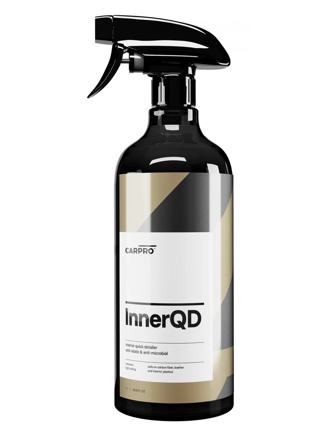 InnerQD Szybki i łatwy w użyciu, antystatyczny i antybakteryjny quick detailer do wnętrza. Produkt można używać na wszystkich powierzchniach wewnętrznych, aby łatwo usunąć odciski palców, kurz i lekkie zabrudzenia. Hamuje przyczepność elektrostatyczną cząstek kurzu, a także rozwój patogennych mikroorganizmów. Formuła InnerQD pozostawia suchą w dotyku, lekko satynową w wyglądzie, pozbawioną smug warstwę antystatyczną, która pomaga zmniejszyć ogólną ilość nagromadzonego kurzu. Najważniejsze cechy: Czyści i zabezpiecza w jednym kroku Bezpieczny dla wszystkich powierzchni wewnętrznych Antystatyczny Antybakteryjny Lekko satynowe i suche w dotyku wykończenie Zalecany do czyszczenia elementów wykonanych ze: skóry winylu plastiku gumy szczotkowanego aluminium chromu Sposób użycia: Spryskać za pomocą atomizera ściereczkę z mikrofibry i przetrzeć dany element. Środki ostrożności: Zawiera cytral. Może wywołać reakcje alergiczną Przed użyciem przetestować działanie w niewidocznym miejscu Trzymać z dala od dzieci Przechowywać w suchym i chłodnym miejscu Pojemność: 1000ml