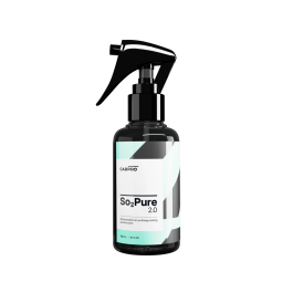 CarPro So2Pure 2.0 – to ewolucja fotokatalitycznej powłoki do usuwania nieprzyjemnych zapachów z wnętrza samochodu, która bazuje na najnowszej technologii TiO2. Aktywuje się pod wpływem światła i skutecznie eliminuje nawet najsilniejsze zapachy i zanieczyszczenia. Pozostawia przyjemny zapach jaśminu. Powłoka So2Pure 2.0 jest teraz jeszcze bardziej skuteczna, wystarcza na dłużej i może być stosowana na każdej powierzchni wnętrza samochodu, a nawet w domu. Najważniejsze cechy: Eliminuje drobnoustroje, pleśń, nikotynę, zapach zwierząt i chemikaliów., Przeznaczona do stosowania na dowolnej powierzchni, Przyjemny jaśminowy zapach. Sposób użycia: Miękkie powierzchni (materiałowe siedzenia, dywany, podsufitki itd.): Dokładnie oczyścić powierzchnię. Wstrząsnąć butelką z produktem. Nanieść równomiernie za pomocą atomizera na zabezpieczaną powierzchnię i pozostawić do wyschnięcia na słońcu. Twarde powierzchnie (skórzane siedzenia, deska rozdzielcza itd.): Dokładnie oczyścić powierzchnię. Wstrząsnąć butelką z produktem. Nanieść za pomocą atomizera na zabezpieczaną powierzchnię i pozostawić do wyschnięci w temperaturze pokojowej. Zebrać wszelkie pozostałości, aby uniknąć nierównomiernego wykończenia powierzchnie. Wystawić powierzchnię na działanie słońca, aby aktywować działanie powłoki. Pojemność: 120 ml