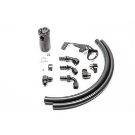 COMPATIBILITY 2020+ Toyota MK5 GR Supra-Turbocharged 3.0L (B58) ONLY Radium Engineering catch cans feature large 10AN ORB ports, a 4AN ORB drain port, 2-step oil separation baffling, and an O-ring sealed dipstick. These kits mount using factory holes and integrate perfectly with the surrounding components. They do NOT vent to atmosphere (VTA), thus are emissions and track legal. Closed loop systems remove the oil and sludge from the PCV gasses before it is routed to the engine to be burned. A closed loop system also promotes negative crankcase pressure for optimal performance. Furthermore, closed systems prevent unwanted oil vapors from entering the cabin. The dipsticks built into the catch cans allow easy inspection of accumulated fluid. No cutting, drilling or permanent modifications are required. 20-0749-FL CATCH CAN KIT, PCV, MK5 SUPRAThe PCV catch can kit runs inline between the ventilation valve and the intake pipe. It mounts to threaded bosses on the front radiator support. This location stays clear of aftermarket parts such as an upgraded turbocharger or intake tubing. The PCV catch can traps unwanted "metered" crankcase vapor, unspent fuel, and oil sludge. It promotes clean filtered air back into the turbocharger inlet. INCLUDES-Baffled oil catch can-MK5 GR Supra specific mounting bracket-AN adapter fittings and hose ends-Stainless steel hardware-Radium PCV hose 20-0750-FL CATCH CAN KIT, CCV, MK5 SUPRAThe CCV catch can mounts to 2 holes on the front radiator support. It was designed specifically to clear strut braces. Furthermore, this location stays clear of aftermarket parts such as an upgraded turbocharger or intake tubing. To retain factory functionality, the CCV catch can runs inline between the crankcase vent (CCV) port and the intake pipe. At low loads, it experiences atmospheric pressure. However, when the engine is at high load (WOT), the line will experience high flow from the crankcase into the intake system. This would normally lead to oil and sludge accumulation in the air filter intake pipe. This oil accumulation would spread and be found in the intercooler which lowers the thermal efficiency properties of the heat exchanger and leads to decreased performance. The CCV catch can captures this and promotes clean filtered air back into the intake. INCLUDES-Baffled oil catch can-MK5 GR Supra specific mounting bracket-AN adapter fittings and hose ends-Stainless steel hardware-Radium PCV hose 20-0751-FL DUAL CATCH CAN KIT, MK5 SUPRAFor the ultimate in engine protection, Radium recommends 20-0751 Dual Catch Can Kit, MK5 Supra. This kit utilizes both the "PCV" and "CCV" catch can kits detailed above. Instruction PDF