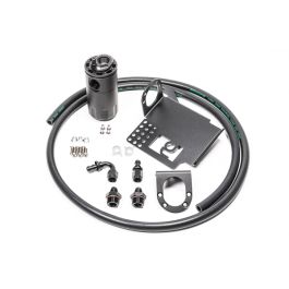 FEATURES-Effectively raises the octane and increased engine performance from cleaner inlet air -Prevents oil buildup in the intake or intercooler system walls, throttle body, intake manifold, etc. -Excessive oil collection can be an indicator of a damaged engine.-Lowers hydrocarbon emissions -Capacity: 7 fluid ounces -Height (without fittings): 5 inches -Outside Diameter: 2.45 inches S2000 CATCH CAN KITSRadium Engineering offers two independent S2000 oil catch can kits that are sold individually or together. They do NOT vent to atmosphere (VTA), thus are emissions and track legal. Closed loop systems route clean filtered air back in through the engine to be burned and to promote negative crankcase pressure for optimal performance. Furthermore, closed systems prevent unwanted oil vapors from entering into the cabin. The 20-0097-FL Crankcase Catch Can Kit runs inline with the 1/2" valve cover breather port. At low loads it experiences atmospheric pressure, but when the engine is at high load (WOT), this hose will experience vacuum and would normally be drawing unwanted crankcase vapors, unspent fuel, and oil sludge into the air filter intake pipe. If the engine is turbocharged or supercharged and you are finding oil accumulation stuck in the intercooler, this catch can is a necessity as oil will lower the thermal efficiency properties of the heat exchange process. The 20-0098-FL PCV Catch Can Kit comes with 2 mounting brackets. One bracket will be disregarded depending if the crankcase vent kit will also be used. This catch can runs inline with the 3/8" PCV (positive crankcase ventilation) valve. When the intake manifold pressure is close to or greater than atmospheric pressure, the PCV "check" valve closes and, thus, this hose experiences no flow. Conversely, the PCV hose will experience "metered" vacuum when the engine is idling, low load cruising, and decelerating. This would normally draw unwanted crankcase vapor, unspent fuel, and oil sludge into the intake manifold immediately after a high load run. Note: Because the Radium catch cans are pressure sealed, they are great for boosted applications as well so connecting to the intake manifold is permitted. For the ultimate in engine protection, Radium recommends the S2000 20-0099-FL Dual Catch Can Kit (shown below) which utilizes both the "Crankcase" catch can and "PCV" catch can. 20-0098-FL PCV Kit Includes:-Radium billet oil catch can with integrated condenser and dipstick-Radium S2000-specific laser cut powder coated mounting bracket-Radium universal laser cut powder coated mounting bracket-Anodized aluminum -6AN hose ends -Anodized 6AN adapter fittings -Stainless steel mounting hardware-OEM spring hose clamps -3/8" PCV rubber hose Instruction PDF