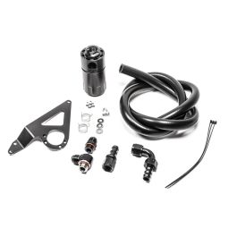 COMPATIBILITY2022+ Toyota GR862022+ Subaru BRZ OVERVIEWAn oil catch can is essential to protect the engine from elevated levels of crankcase blow-by accumulated from aggressive driving. Excess oil-saturated air circulating back into the air intake stream can lead to degraded performance. Radium Engineering catch cans feature large 10AN ORB ports, a 4AN ORB drain port, 2-step oil separation baffling, and an O-ring sealed dipstick. FEATURES-Less oil consumption effectively raises octane-Cleaner air increases engine performance -Prevents sludge buildup in the intake-Lowers hydrocarbon emissions -Capacity: 7 fluid ounces -Height (without fittings): 5 inches-Outside Diameter: 2.45 inches PLATFORM SPECIFICSThe catch cans are strategically located for compatibility with Right Hand Drive (RHD) and Left Hand Drive (LHD) variations. Minor brake line clearancing is necessary on RHD installations. For mounting, the kits use factory bosses and holes on the chassis. No cutting, drilling or permanent modification to the vehicle are required. The two oil catch can kits are completely independent of each other and are sold individually or together. They do NOT vent to atmosphere (VTA), thus are emissions and track legal. Closed loop systems route clean filtered air back in through the engine to be burned and to promote negative crankcase pressure for optimal performance. Furthermore, closed systems prevent unwanted oil vapors into the cabin. 20-0911-FL CATCH CAN KIT, PCV, 2022+ BRZ/GR86, FLUID LOCKThe 20-0911-FL PCV kit mounts on the RH side of the engine bay. This catch can runs inline with the 5/8" PCV (positive crankcase ventilation) valve. When the intake manifold pressure is close to or greater than atmospheric pressure, the PCV "check" valve closes and, thus, this hose experiences no flow. Conversely, the PCV hose will experience "metered" vacuum when the engine is idling, steady state cruising, and decelerating. This would normally draw unwanted crankcase vapor, unspent fuel, and oil sludge into the intake manifold immediately after a high load run. 20-0913-FL DUAL CATCH CAN KIT, 2022+ BRZ/GR86, FLUID LOCKFor the ultimate in engine protection, Radium Engineering recommends the 20-0913-FL Dual Catch Can Kit. This kit utilizes both the CCV and PCV catch can kits. Instruction PDF