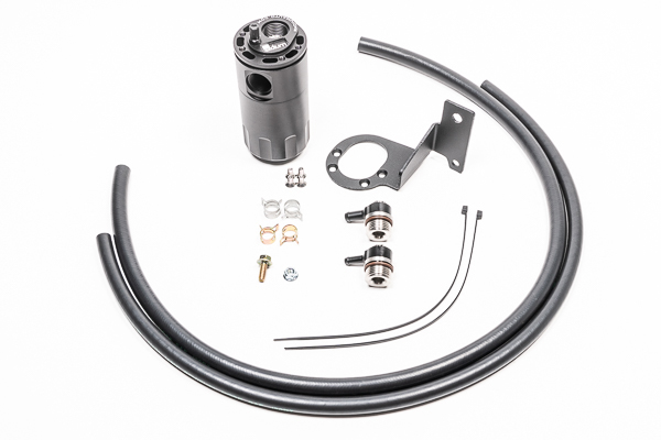 COMPATIBILITY 2020+ Toyota MK5 GR Supra-Turbocharged 3.0L (B58) ONLY Radium Engineering catch cans feature large 10AN ORB ports, a 4AN ORB drain port, 2-step oil separation baffling, and an O-ring sealed dipstick. These kits mount using factory holes and integrate perfectly with the surrounding components. They do NOT vent to atmosphere (VTA), thus are emissions and track legal. Closed loop systems remove the oil and sludge from the PCV gasses before it is routed to the engine to be burned. A closed loop system also promotes negative crankcase pressure for optimal performance. Furthermore, closed systems prevent unwanted oil vapors from entering the cabin. The dipsticks built into the catch cans allow easy inspection of accumulated fluid. No cutting, drilling or permanent modifications are required. 20-0749-FL CATCH CAN KIT, PCV, MK5 SUPRAThe PCV catch can kit runs inline between the ventilation valve and the intake pipe. It mounts to threaded bosses on the front radiator support. This location stays clear of aftermarket parts such as an upgraded turbocharger or intake tubing. The PCV catch can traps unwanted "metered" crankcase vapor, unspent fuel, and oil sludge. It promotes clean filtered air back into the turbocharger inlet. INCLUDES-Baffled oil catch can-MK5 GR Supra specific mounting bracket-AN adapter fittings and hose ends-Stainless steel hardware-Radium PCV hose 20-0750-FL CATCH CAN KIT, CCV, MK5 SUPRAThe CCV catch can mounts to 2 holes on the front radiator support. It was designed specifically to clear strut braces. Furthermore, this location stays clear of aftermarket parts such as an upgraded turbocharger or intake tubing. To retain factory functionality, the CCV catch can runs inline between the crankcase vent (CCV) port and the intake pipe. At low loads, it experiences atmospheric pressure. However, when the engine is at high load (WOT), the line will experience high flow from the crankcase into the intake system. This would normally lead to oil and sludge accumulation in the air filter intake pipe. This oil accumulation would spread and be found in the intercooler which lowers the thermal efficiency properties of the heat exchanger and leads to decreased performance. The CCV catch can captures this and promotes clean filtered air back into the intake. INCLUDES-Baffled oil catch can-MK5 GR Supra specific mounting bracket-AN adapter fittings and hose ends-Stainless steel hardware-Radium PCV hose 20-0751-FL DUAL CATCH CAN KIT, MK5 SUPRAFor the ultimate in engine protection, Radium recommends 20-0751 Dual Catch Can Kit, MK5 Supra. This kit utilizes both the "PCV" and "CCV" catch can kits detailed above. Instruction PDF