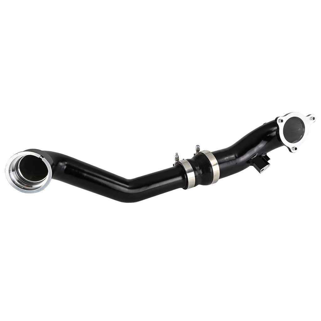 Zestaw przewodów dolotowych charge pipe. Średnica wewnętrzna przewodu jest zwiększona w porównaniu do oryginalnej rury dolotowej z 2,5’’ na 3’’, dzięki czemu ograniczenie przepływu powietrza jest zminimalizowane. Wadliwy fabryczny element tworzy turbulencje powietrza i powoduje zmniejszenie przepływu i wydajności. Wykonany z tworzywa sztucznego ulega uszkodzeniu na flanszy mocującej lub pęka, został zastąpiony rurami aluminiowymi co gwarantuje szczelność. Elementy łączy redukcja silikonowa z poczwórnym zbrojeniem o grubości ścianki 5mm.