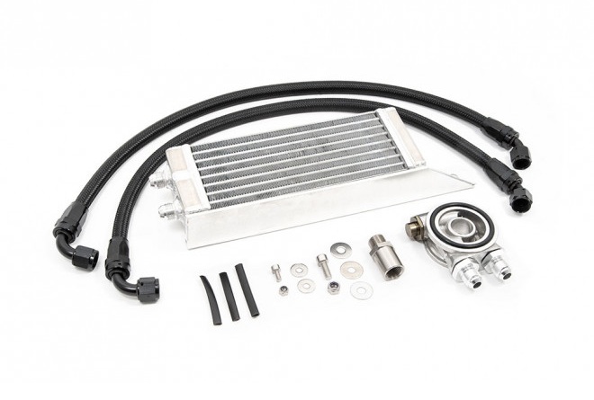 Chłodnica oleju Forge FMOC12 posiada wloty i wyloty umieszczone w optymalnej pozycji zapewniającej prawidłowy przepływ oleju. Montaż chłodnicy oleju w nieprawidłowej orientacji (np. „do góry nogami”) może prowadzić do powstawania kawitacji (pęcherzy powietrza) w układzie, co w dłuższym okresie może skutkować zmęczeniem silnika oraz potencjalnym uszkodzeniem jego wewnętrznych komponentów z powodu niewystarczającego smarowania. Zespół badawczo-rozwojowy Forge Motorsport poświęcił wiele godzin na opracowanie najlepszej możliwej konfiguracji montażu chłodnicy oleju w Toyota GR Yaris, uwzględniając każdy aspekt konstrukcyjny. W przeciwieństwie do wielu zestawów chłodnic oleju dostępnych na rynku, FMOC12 zachowuje fabryczną chłodnicę olej–woda, co w praktyce podwaja zdolność chłodzenia oleju silnika. Zestaw wykorzystuje dedykowany, laserowo wycinany aluminiowy uchwyt, który idealnie pasuje do belki wzmacniającej Toyota Yaris GR. W komplecie znajdują się dwie wstępnie zmontowane, wysokiej jakości podwójnie oplecione przewody olejowe AN-8. Chłodnica oleju Forge dostępna jest w trzech wersjach kolorystycznych: stealth black dla wyglądu OEM, raw alloy lub czerwony dla sportowego charakteru. Temperatura oleju może osiągać niebezpieczne poziomy podczas jazdy torowej lub intensywnej eksploatacji w gorącym klimacie. Wzrost temperatury oleju prowadzi do obniżenia skuteczności smarowania wewnętrznych elementów silnika. Umieszczenie chłodnicy oleju z przodu pojazdu, w kratce chłodnicy, zapewnia doskonały przepływ powietrza, a podczas testów odnotowano znaczące obniżenie temperatur oleju. W rezultacie FMOC12 jest produktem niezbędnym dla entuzjastów dbających o osiągi i trwałość swojego pojazdu. Zestaw chłodnicy oleju do GR Yaris jest kompletnym rozwiązaniem typu bolt-on, co oznacza, że w razie potrzeby może być również w pełni odwracalny. W komplecie znajduje się również szczegółowa instrukcja montażu. Zawartość zestawu 1x Aluminiowa płyta sandwich Forge 1x Chłodnica oleju typu twin pass 2x Przewody olejowe Wszystkie niezbędne elementy montażowe Zastosowanie: Toyota Yaris GR 1.6 Kolor: srebrny