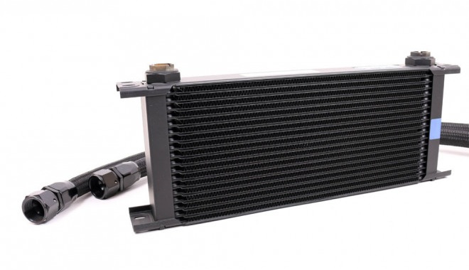 Zestaw został zaprojektowany w celu wyeliminowania fabrycznej wady seryjnego chłodzenia oleju. Oryginalna chłodnica oleju montowana przez Audi wykonana jest z aluminium, natomiast końcówki przewodów są stalowe. Połączenie dwóch różnych metali prowadzi do korozji elektrochemicznej, która z czasem powoduje pękanie złączy. Skutkiem jest początkowo niewielki wyciek oleju, który stopniowo się nasila, aż w skrajnych przypadkach prowadzi do katastrofalnego uszkodzenia przewodów chłodnicy oleju, a nawet silnika. W praktyce, z powodu postępującej korozji, przewody olejowe zazwyczaj nie mogą zostać zdemontowane bez uszkodzenia samej chłodnicy. Oznacza to konieczność wymiany zarówno chłodnicy oleju, jak i obu przewodów, co w ASO wiąże się z kosztem przekraczającym 1100 GBP, nie licząc robocizny i materiałów eksploatacyjnych. Nasze rozwiązanie bazuje na sprawdzonych komponentach klasy motorsport i stanowi kompletną wymianę układu – począwszy od przyłącza na bloku silnika. Adapter wykonany jest z precyzyjnie obrabianego aluminium 6082 billet, a następnie anodowany, co całkowicie eliminuje ryzyko korozji. Z adaptera olej prowadzony jest przez przewody w stalowym oplocie Hose Technik z czarną osłoną zewnętrzną, zakończone czarnymi, anodowanymi złączkami aluminiowymi -12 AN. Za chłodzenie odpowiada 19-rzędowa chłodnica oleju Setrab – producenta dostarczającego komponenty m.in. do Audi oraz zespołów Formuły 1. Chłodnica również wykończona jest na czarno. Wszystkie elementy zestawu wykonane są z kompatybilnych materiałów, powszechnie stosowanych w motorsporcie, dzięki czemu ryzyko korozji w długim okresie użytkowania zostało całkowicie wyeliminowane. Chłodnica montowana jest na laserowo wycinanej i malowanej proszkowo ramie, która jednocześnie pełni funkcję uchwytu dla modułu sterowania wentylatora Audi. Czarne wykończenie wszystkich elementów zapewnia maksymalnie dyskretny montaż – instalacja pozostaje praktycznie niewidoczna, o ile nie wiesz, gdzie patrzeć. Pierwotnym założeniem projektu było całkowite zastąpienie problematycznych fabrycznych komponentów Audi, co zestaw w pełni realizuje. Dodatkowo, poprzez przeniesienie chłodnicy oleju nieco wyżej niż w seryjnym układzie, zmniejszono ryzyko jej uszkodzenia przez kamienie i zanieczyszczenia drogowe.