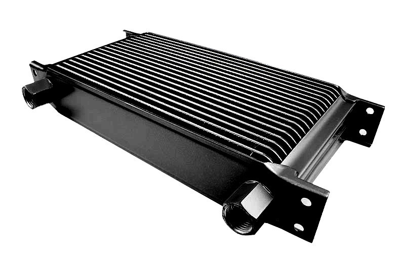 Aluminiowa, wysokowydajna chłodnica oleju. Solidnie wykonana, dzięki czemu wytrzymuje wysokie ciśnienia, a odpowiednia gęstość żeberek radiatora zapewnia skuteczne chłodzenie nawet w ekstremalnych warunkach torowych, z powodzeniem stosowana w wyścigach samochodowych, drifcie. Testowane do 10 barów.