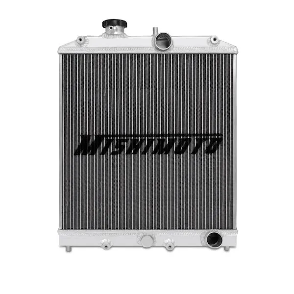 The Mishimoto half length Honda civic performance radiator is a perfect upgrade for anyone looking to increase engine performance and cooling efficiency. Popular among import tuners, this half sized radiator can also be tailored towards B and D series motors in custom applications (note: Mishimoto cannot give technical or installation help on custom application installations). Designed and engineered to maximize cooling efficiency, boost engine functions, and protect your car from overheating. Whether you drive your Civic daily or take it to the track, installing an upgraded civic radiator is essential in maintaining a cool well balanced engine. The Mishimoto Honda Civic Aluminum Radiator features a lightweight dual core, 100% brazed aluminium, and polished end tanks. This aluminum radiator, like all Mishimoto radiators, comes with a 1.3 bar high-pressure radiator cap and is backed by our unparalleled Mishimoto Lifetime Warranty. For even greater cooling efficiency pick up a Mishimoto lightweight aluminium 92-00 Honda Civic fan Shroud kit.Direct fit for 1992-2000 Honda CivicOverall Size: 18.5" x 14.6" x 2.15" / Core Size: 13.78" x 14.09" / Rows: 2Inlet & Outlet: 1.25" / Core Thickness: 1.65" / Tank Wall Thickness: 0.08"All-aluminum construction includes high-pressure rad cap and magnetic drain plugMishimoto Lifetime Warranty