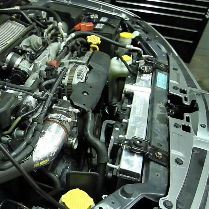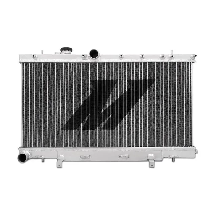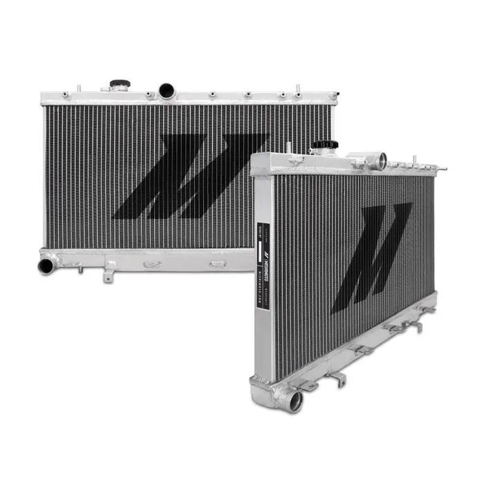 Whether you daily drive a stock STI or rallycross a modified WRX, an efficient cooling system is key to extending the life of your flat-four. The plastic end tanks of the stock radiator are especially prone to cracking from years of constant variation in temperature. A radiator failure can result in overheating, head gasket failure, and other engine damage that can quickly put an end to a fun day at the track. Protect your investment with the Mishimoto performance radiator engineered specifically for the 2001-2007 Subaru WRX/STI. After identifying the radiator in these vehicles as a weak point, our engineers set out to provide an efficient, durable radiator that can take the abuse of competitive driving and provide the reliability you need for daily commuting. The Mishimoto Subaru radiator features all-aluminum construction, which provides increased heat and pressure tolerance, improved heat dissipation, and improved cooling efficiency. The 100% brazed aluminum core and TIG-welded end tanks provide optimal durability and years of efficient and reliable service. This aluminum radiator is a complete bolt-in unit and replaces the factory radiator without requiring any modification to your Subaru. The Mishimoto Subaru Performance Aluminum Radiator includes a Mishimoto 1.3 Bar High-Pressure Radiator Cap. This cap effectively raises the boiling point of the coolant, thus providing a higher threshold for safe temperatures and resulting in a more efficient cooling system. This radiator provides a significant increase in coolant capacity, which allows for aggressive driving while retaining safe coolant temperatures. Keep your Subaru on the street and out of the shop with the Mishimoto Subaru WRX and STI Performance Aluminum Radiator. As with all our products, this aluminum radiator includes the Mishimoto Lifetime Warranty.Direct fit for 2001-2007 Subaru WRX/STIOverall Size: 28.4" x 17.2" x 2.15 / Core Size: 13.54" x 27.24" / Rows: 2Inlet & Outlet: 1.5" / Core Thickness: 1.65" / Tank Wall Thickness: 0.08"TIG-welded aluminum radiator includes high-pressure rad cap and magnetic drain plugMishimoto Lifetime Warranty