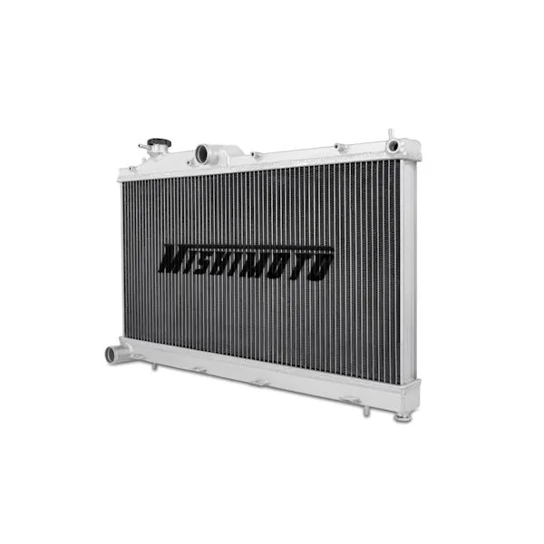 The Mishimoto performance aluminum radiator for the WRX and STI is designed and engineered to maximize cooling efficiency by up to 30%, boost engine functions, and most importantly protect your car from overheating. It is the ideal upgrade to the stock Subaru radiator whether you drive your vehicle daily or take it for track runs. The Mishimoto WRX radiator features a lightweight dual core, 100% brazed aluminum, and polished end tanks, enhancing the overall performance of your engine. Every Mishimoto aluminum radiator is a direct stock fit making installation effortless with no cutting or modification required. This radiator comes with a Mishimoto 1.3 Bar High-Pressure Radiator Cap and, like all our aluminum radiators, comes with the unparalleled Mishimoto Lifetime Warranty.Direct fit for the 2008-2014 Subaru WRX and 2008-2015 Subaru SitOverall Size: 28" x 21.8" x 2.15" / Core Size: 13.39" x 27.08" / Rows: 2Inlet & Outlet: 1.54" / Core Thickness: 1.65" / Tank Wall Thickness: 0.08"TIG-welded aluminum radiator includes high-pressure rad cap and magnetic drain plugMishimoto Lifetime Warranty