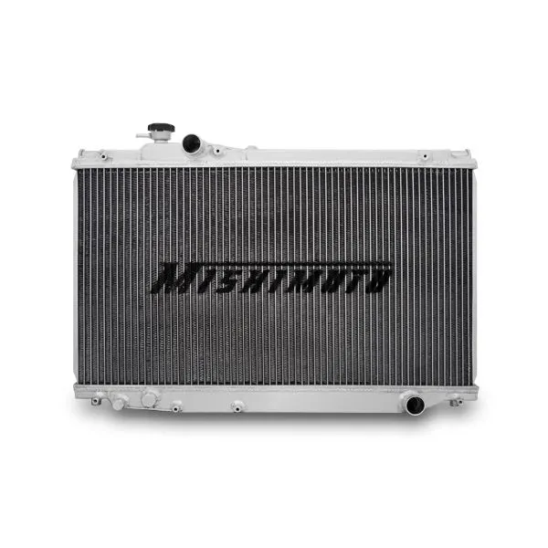 A Mishimoto performance aluminum radiator is the ideal upgrade to the stock Toyota Supra radiator. Designed and engineered to maximize cooling efficiency, boost engine functions, and most importantly protect your car from overheating. It will undoubtedly extend the lifetime and performance of your Supra engine whether you drive your vehicle daily or take it for track runs. The Mishimoto aluminum Toyota Supra radiator features a lightweight dual core, 100% brazed aluminum, and polished end tanks, enhancing the overall performance of your engine. Every Mishimoto aluminum radiator is a direct OEM fit, making installation effortless with no cutting or modification required. Check out the Mishimoto lightweight aluminum Supra fan shroud for even more cooling efficiency. This aluminum radiator comes with a high pressure 1.3 bar Mishimoto radiator cap, and, like all Mishimoto radiators, this aluminum radiator comes with our signature lifetime warranty.Direct fit for the 1993-1998 MKIV Toyota Supra 3.0LOverall Size: 29.7" x 20.8" x 2.47" / Core Size: 15.75" x 29.05" / Rows: 2Inlet & Outlet: 1.4" / Core Thickness: 1.97" / Tank Wall Thickness: 0.08"TIG-welded aluminum radiator includes high-pressure rad cap and magnetic drain plugMishimoto Lifetime Warranty