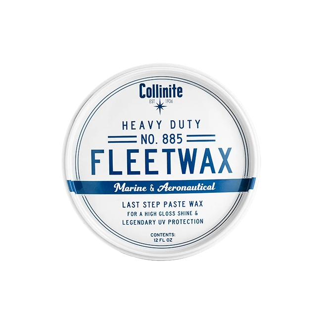 COLLINITE 885 Fleetwax Heavy Duty Paste to ekstremalnie trwały wosk w paście chroniący przed szkodliwym działaniem zanieczyszczeń środowiskowych, promieniowaniem UV, korozją, etc. Pozostawia wykończenie pełne blasku, wzmacnia połysk. Wosk przeznaczony do wszelkiego rodzaju powierzchni lakierowanych, metalowych, z włókna szklanego i innych. Nie zawiera cząsteczek ściernych, jest całkowicie bezpieczny dla wierzchniej warstwy lakieru. COLLINITE 885 Fleetwax Heavy Duty Paste jest szczególnie polecany do wszelkich pojazdów pływających (żaglówek, łodzi motorowych, skuterów, itp.) i latających, w żeglarstwie i aeronautyce. Sposób użycia: 1. Aplikować na ostudzoną powierzchnię. 2. Nakładać COLLINITE 885 Fleetwax Heavy Duty Paste na czystą i suchą powierzchnię za pomocą aplikatora. 3. Pozostawić produkt do wyschnięcia. 4. Wypolerować do połysku miękkim ręcznikiem z mikrofibry. W przypadku utlenionej lub trwale zabrudzonej powierzchni użyć COLLINITE 920 Fiberglass Boat Cleaner przed aplikacją wosku. Pojemność: 355 g
