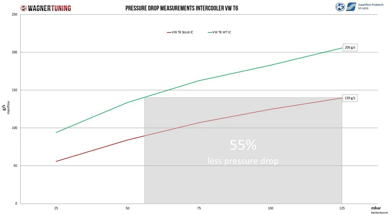 The revolutionary WagnerTuning high performance intercooler for the VW T6 with 2.0 liter BiTDI engine!Boost the power and performance of your vehicle to a whole new level. Our high performance intercooler replaces the water-cooled intercooler of the indirect charge air cooling circuit and brings you a multitude of advantages.With impressive dimensions of 150mm x 185mm x 114mm and a new type of performance intercooler core, this intercooler is specifically designed to meet the high demands of the VW engine. Compared to the original intercooler, it offers an amazing 106% more external core volume. The intelligent ratio between the inner and outer cooling surfaces ensures maximum heat transfer while allowing optimal internal airflow. Through CAD design and CFD simulations, the cast aluminum end boxes have been perfected to provide excellent cooling characteristics with minimal back pressure. The result is optimal cooling of the supercharged air and a significant increase in performance for your engine.Our WagnerTuning intercoolers feature a high-quality heat-conductive anti-corrosion coating that ensures long-lasting cooling performance and protects your vehicle from the elements. Installation of the system is straightforward and plug-and-play thanks to our detailed installation instructions, so you can quickly reap the benefits.The benefits of this product at a glance:- Significantly improved cooling capacity for optimum performance- More power and torque for your engine- Mechanical relief of the turbocharger for a longer service life- 100% pressure resistance and reliable performance under all conditions- Easy installation thanks to plug-and-play system- Up to 4 years warranty for a worry-free driving experienceBoost the performance of your VW T6 with the WagnerTuning high-performance intercooler and enjoy a top-notch driving experience. Get the upgrade your vehicle deserves now!The Wagner Tuning performance intercooler fits the following vehicles:Volkswagen T6 2.0BiTDI: 146-150KW/199- 204 HP (2015-2019) CXEC; CXEB.Replaces stock mounted intercooler: 04L145749L, 04L145749H, 04L145749M, (not 04L145749F)core dimensions OEM intercooler:137mm x 167mm x 67mmV = 1,53 Lcore dimensions Wagner Tuning intercooler:150mm x 185mm x 114mmV = 3,16 L (+106%)Part number: 200001182.T6Kit comes with:1 Intercooler2 Silicone hoses1 Mounting materialWeight: 7.00 kgVolume: 15.00 cm³/kg