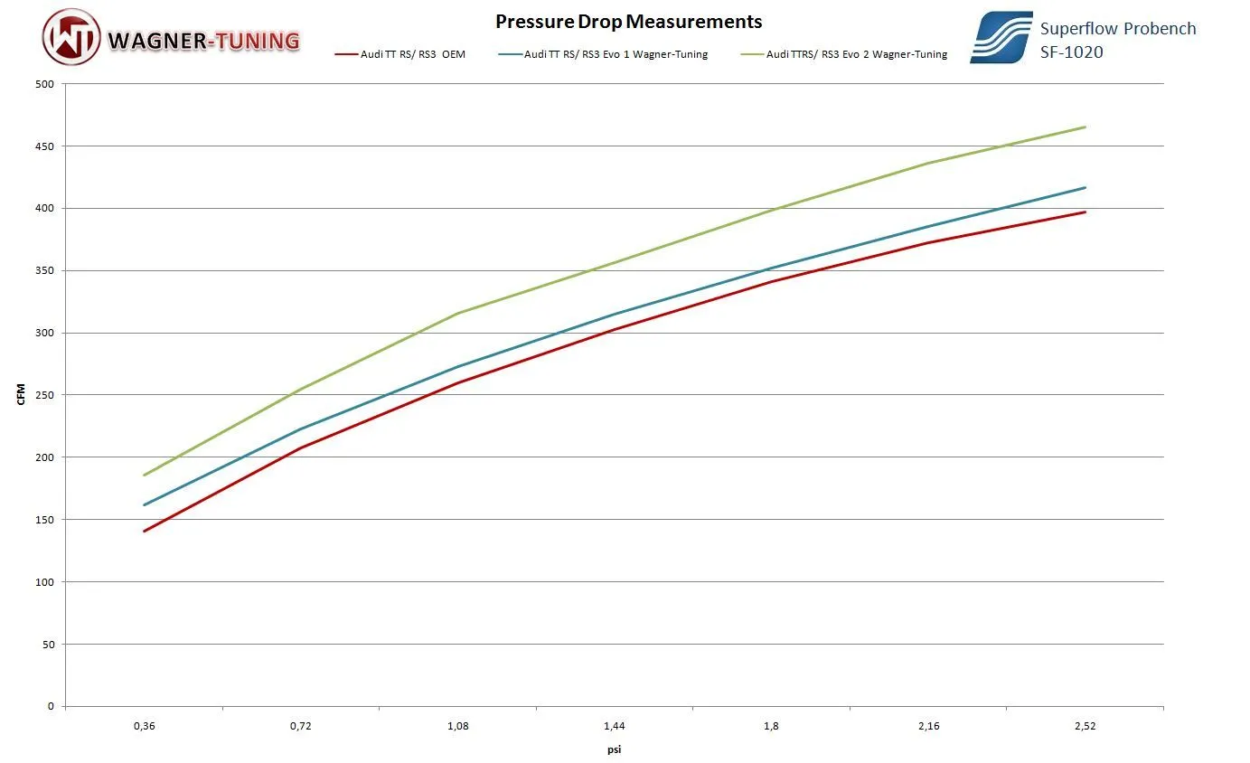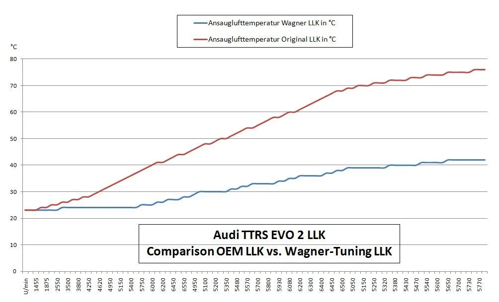 Discover ultimate performance with our Evo 2 Competition intercooler for the Audi TTRS 8J!Do you want to raise your vehicle to a new level of performance? Our Evo 2 Competition intercooler is the answer for those looking for the highest performance and quality. With impressive core dimensions of 535 mm x 260 mm x 95 mm, this cooler not only offers an amazing 62.5% larger flow area, but also a massive 94% increase in charge air volume compared to the original intercooler.The secret to our Evo 2 intercooler lies in the innovative Competition high performance intercooler. Designed to not only provide superior cooling, but also to allow sufficient airflow to adjacent components. Thanks to high-quality cast aluminum, the end boxes are lightweight yet extremely strong. Each cooler has been carefully optimized in the CAD system to ensure the perfect airflow.This intercooler is not just an upgrade, it's a statement. It is tailor-made for racing and offers not only outstanding cooling properties, but also a stable unit with the original crossmember of your vehicle. Despite its powerful features, it weighs less than 10 kg, making it lighter than many other coolers on the market.Installation is a breeze. Thanks to the 1:1 exchange, you can install it on the original mounting points. Feel the improved performance and optimized cooling of the charged air as you dominate the roads.Ready for the ultimate driving experience? Order your Evo 2 Competition intercooler for the Audi TTRS 8J now and unleash the true power of your vehicle.Intercooler Upgrade Kit EVO 2 for Audi TTRS 8JPart number: 200001024Kit comes with:1 intercooler together with the crossmember.1 set of license plate holder