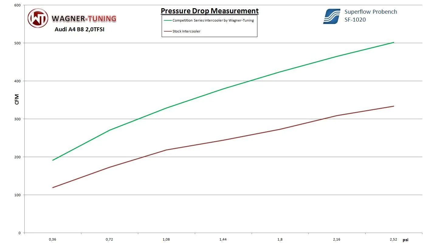 Exceed all expectations with our Competition Intercooler Kit for the Audi A4 B8 Allroad 2.7 TDI!Our high performance intercooler is the key to dramatically increasing the performance of your Audi A4 B8 Allroad 2.7 TDI. With impressive mesh dimensions of 610 mm x 440 mm x 65 mm and an intercooler volume of 17.446 liters, this intercooler offers a huge 178% larger flow area and 158% more intercooler volume compared to the factory intercooler.Our Competition high performance mesh is a quality tube fin mesh with internal turbulators. Despite its impressive size, the intercooler weighs only 9.1 kg.The cast aluminum end boxes were designed in the CAD system and optimized for optimal internal airflow using CFD simulations. An integrated air guide in the end box ensures uniform filling of the Competition high-performance network.The connection diameters have been increased to Ø67 mm, which is why our kit comes with reinforced silicone hoses.All our intercoolers have an anti-corrosion coating with excellent heat conduction properties. This ensures durable and optimal cooling and provides a noticeable increase in performance. Our kit is completely ready to install and allows for easy replacement with the factory intercooler. Our intercooler has been tested up to 6 bar and is pressure stable, making it perfect for racing. All of our products undergo strict qualitative monitoring procedures to ensure the highest standards.Your Audi A4 B8 Allroad 2.7 TDI deserves the best! Our Competition Intercooler Kit will elevate your Audi to a new level of performance and make your driving experience more exciting.Get ready to dominate the road with your Audi A4 B8 Allroad 2.7 TDI!The Competition Intercooler Kit fits to:Audi A4 B8 2,7 TDI (140KW/190PS MKB:CAMA, CGKA)*Audi A4 B8 3,0 TDI (176KW/240PS MKB:CAPA, CCWA)*Audi A4 B8 Allroad 2,7 TDI (140KW/190PS MKB:CAMA, CGKA)*Audi A4 B8 Allroad 3,0 TDI (176KW/240PS MKB:CAPA, CCWA)*Audi A5 B8 2,7 TDI (140KW/190PS MKB:CAMA, CGKA)*Audi A5 B8 3,0 TDI (176KW/240PS MKB:CAPA, CCWA)*Audi A5 Sportback 2,7 TDI (140KW/190PS MKB:CAMA, CGKA)*Audi A5 Sportback 3,0 TDI (176KW/240PS MKB:CAPA, CCWA)** For B8.5 Facelift models Part number: 200001123* For vehicles with dynamic steering, the additional cooling loop must be relocated to a different position. You will find instructions in our installation manual.Item number 200001054Kit comes with:1 intercooler2 charge air hoses4 hose clamps1 mounting material1 assembly instruction